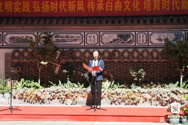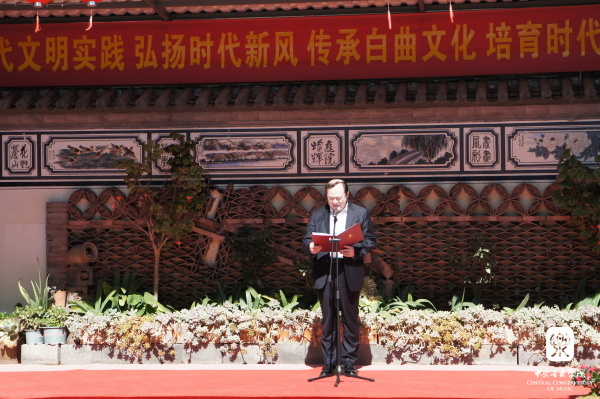 上午,kaiyun体育网页登录入口新时代文明实践云南大理基地揭牌仪式在大理市大理镇龙龛北生久村白族调传习所举行,中国文联党组成员、书记处书记、副主席、kaiyun体育网页登录入口院长俞峰,云南省委宣传部副部长、省文明办主任彭斌,大理州委常委、宣传部长范宏等参加仪式。在揭牌仪式上,俞峰院长、彭斌主任和范宏部长分别致辞。