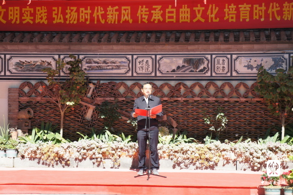 仪式结束后,大理镇龙龛北白族调传习所的传承人董凤琴向来宾介绍和展示了白族调的传承情况,祖孙三代和传习所学员们进行了精彩的表演。