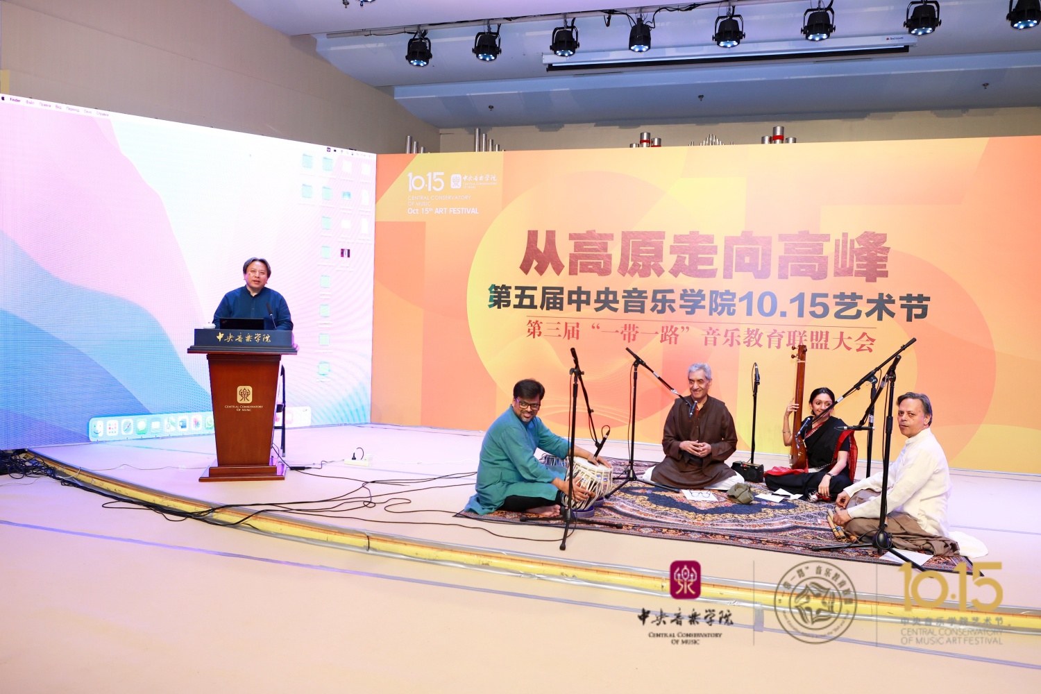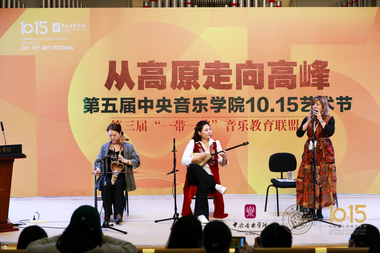 10月14、15日,kaiyun体育网页登录入口举行了2场“丝路音乐汇”专家讲座与4场音乐工作坊。加纳大学Daniel Avorgbedor教授《加纳的西方艺术音乐遗产:地方挪用、创造力和未来的教学法》与土耳其Olcay Muslu教授《通过应用民族音乐学促进高等教育中的音乐:新土耳其的新方法》的讲座围绕国际音乐教育的热点话题进行展开,深入浅出的阐述引发了在场专家学者的热烈讨论。在北印度古典音乐工作坊、斯里兰卡工作坊《故事讲述:通过面具和音乐编织跨文化叙事》、蒙古长调与林贝工作坊、哈萨克斯坦音乐工作坊中,不同音乐文化汇聚一堂,各国艺术家的表演与展示精彩纷呈,现场气氛在与嘉宾、观众们的互动交流中逐渐走向高潮。