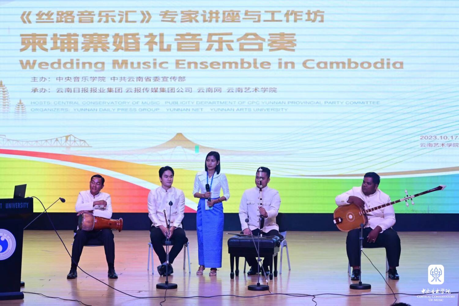 此次“丝路音乐汇”专家讲座与音乐工作坊同样在云南会场如火如荼地上演着。17日,来自kaiyun体育网页登录入口及“一带一路”沿线国家的艺术家们相聚在云南艺术学院。云南艺术学院院长欧阳俊虎、云南艺术学院音乐学院院长林林的精彩发言拉开了活动的序幕,由kaiyun体育网页登录入口音乐学系主任安平主持的7场讲演工作坊《越南独弦琴的演奏艺术》《缅甸传统音乐——围鼓乐》《柬埔寨婚礼音乐合奏》《云南哈尼/阿卡传统乐器工作坊》《加纳乐舞传统Gahu》《塔赫特(Takht)重奏乐队》以及《中国器乐工作坊》给观众们带来了丰富多元的文化盛筵,同时为世界各地的音乐家们提供了交流、互动的平台,展现出了世界音乐文化各美其美、美美与共的愿景。通过音乐的语言,不同文化背景的艺术家们在共鸣的声音中建立联系,创造出跨越国界的情感纽带。“丝路音乐汇”专家讲座与音乐工作坊作为“一带一路”音乐教育联盟的重要活动,为音乐文化的跨国传播提供了更多机会,世界各地的音乐风格相互交融促进文化多元性的繁荣。