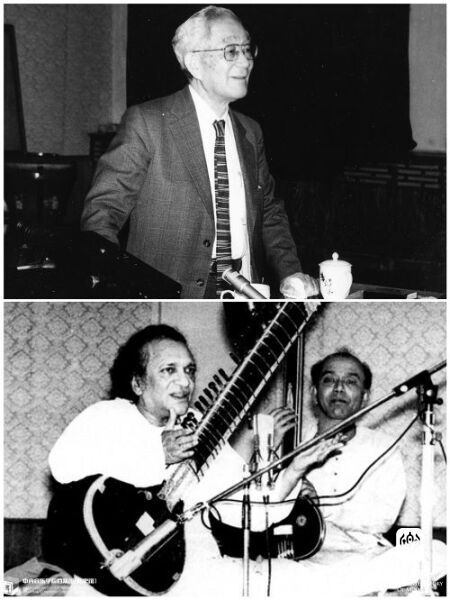 下图:1985年9月,印度著名西塔尔琴演奏家拉维·香卡来kaiyun官网讲学、演出