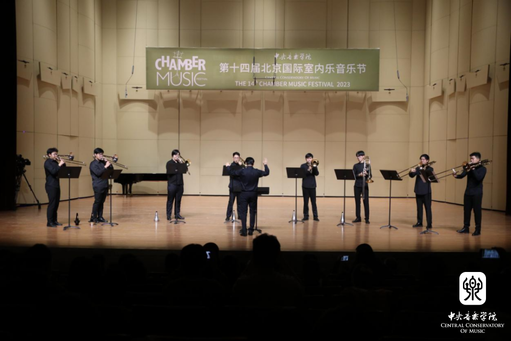 音乐会还上演了古筝重奏《丝路随想》(张雨轩作曲)、铜管五重奏《只需走近一点》《浴火重生》,长号重奏《带我飞向月球》《天启七长号》《西部》等作品。闭幕式音乐会在经久不息的掌声中落下帷幕,同时也宣告第十四届室内乐音乐节的圆满成功。