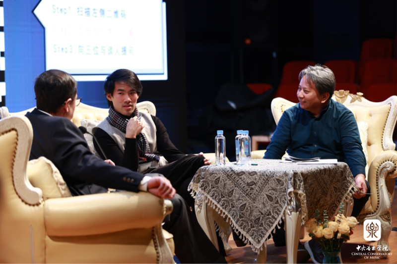 访谈环节中,刘晓禹与安平、韦丹文共同针对音乐理解与艺术追求等话题展开了深入探讨。安平首先谈了对刘晓禹大师课的印象,他说在刘晓禹的教学中,他真切地感受到了感受力、理解力与表现力这三大音乐素养在音乐表演中的重要性;他在谈及观看刘晓禹在国家大剧院的两场音乐会印象时说:“刘晓禹的音乐表演所表现出的是一种近乎自然的逻辑,而非遵从于某一种既定的理解和表演的模式,他是在根据自己心灵深处天然的听觉审美规律来演奏,使音乐仿佛一股翻滚着的情感浪潮般从指尖自然地流淌而出。”