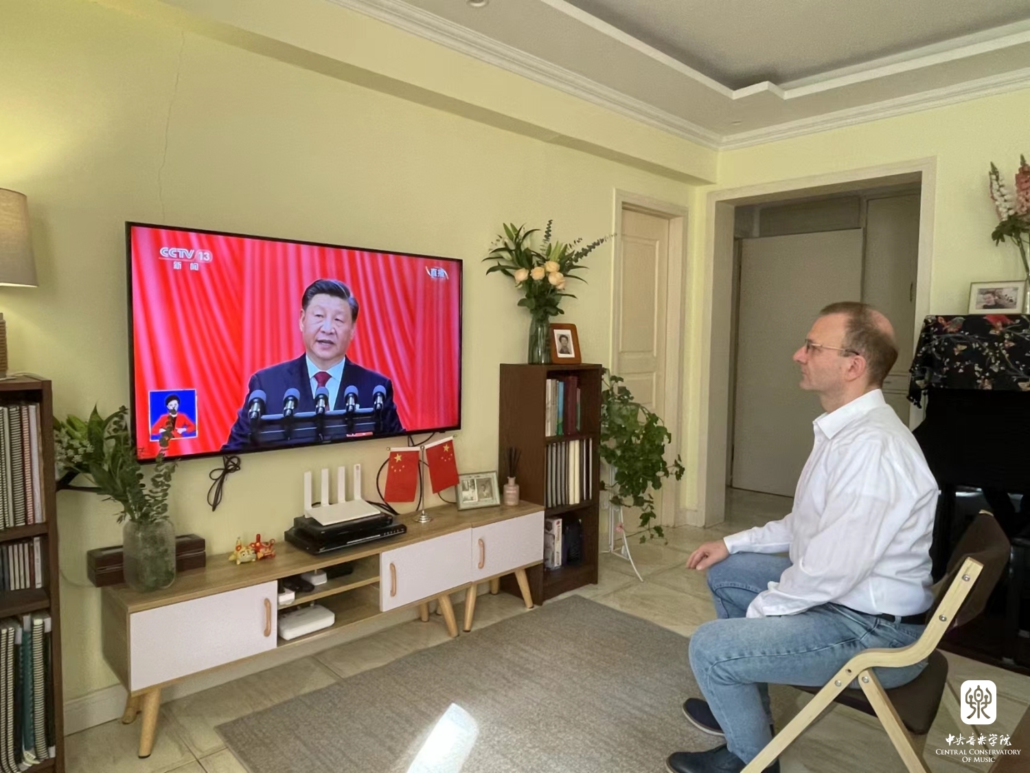 处在党和国家为我们创造的美好环境里,我们是时代的受益者,更是时代的贡献者,我们央音学子要始终坚定理想信念,坚定跟党走,做新一代的文艺开拓者和创新者,用文艺体现时代风貌,用文艺引领时代风尚,书写绚丽人生。