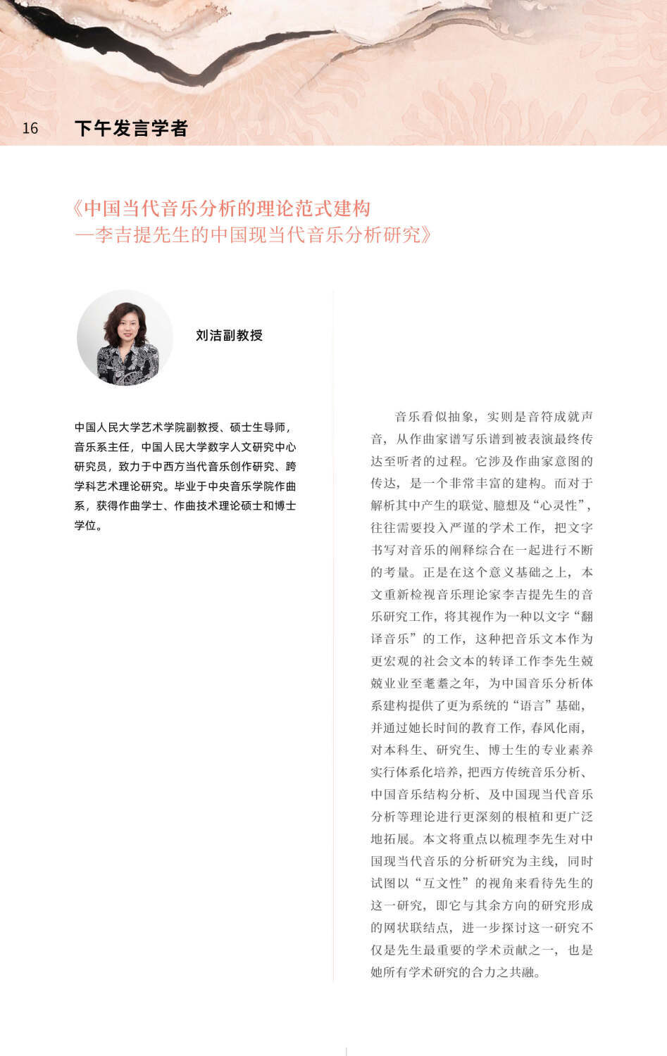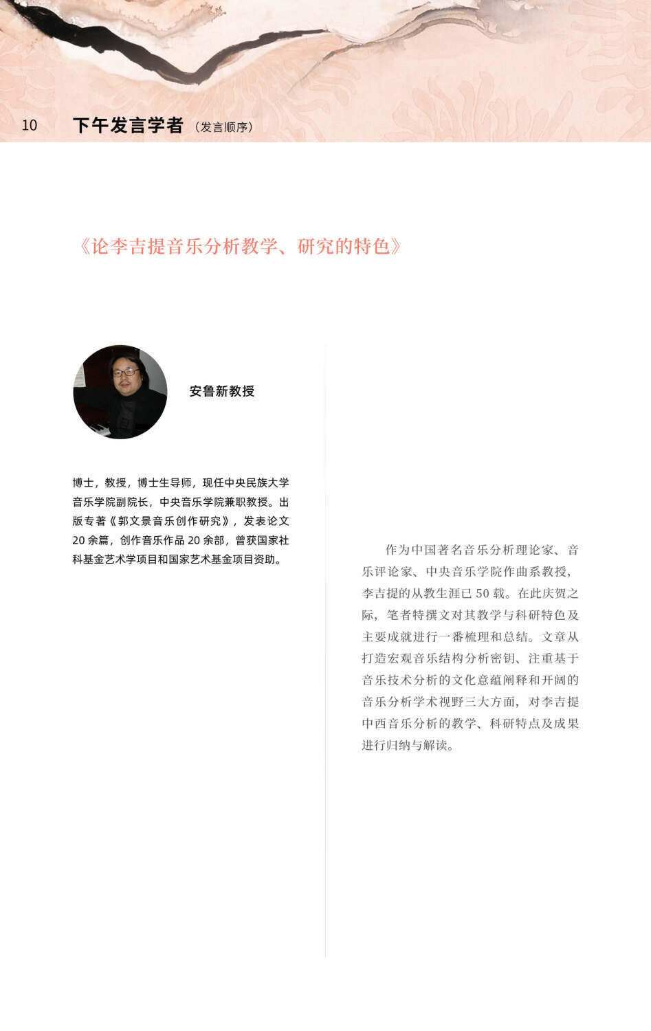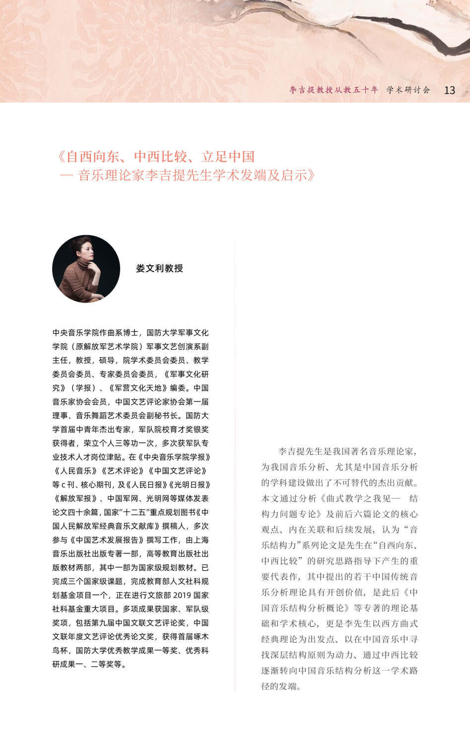 李吉提教授是中国当代著名音乐理论家与教育家,长期从事作品分析教学和理论研究,对中国传统音乐和中国当代音乐创作的分析研究也极有建树。李吉提教授是国务院政府特殊津贴获得者,曾任kaiyun体育网页登录入口作曲系副系主任、作品分析教研室主任和博士生导师。出版《中国音乐结构分析概论》《中国当代音乐分析》及《曲式与作品分析》教程等。先后在kaiyun体育网页登录入口学报、《音乐研究》和《人民音乐》等刊物上发表过百余篇音乐论文。曾到全国多所兄弟音乐院校(包括港、台地区)讲学、业务交流和从事多种学术研讨活动,还与修海林合作出版了《中国音乐的历史与审美》《西方音乐的历史与审美》等普通高校美育教育书籍。与卞祖善一起为中央电视台“广播电视大学”的“中国音乐名家名作”课程编写录制课件、并成套演播。近年来还参与了kaiyun官网国家重点课题“中国歌剧重大问题研究”的子课题写作。2021年获中国民族管弦乐学会颁发的奖杯和“民乐艺术终身贡献荣誉称号”。