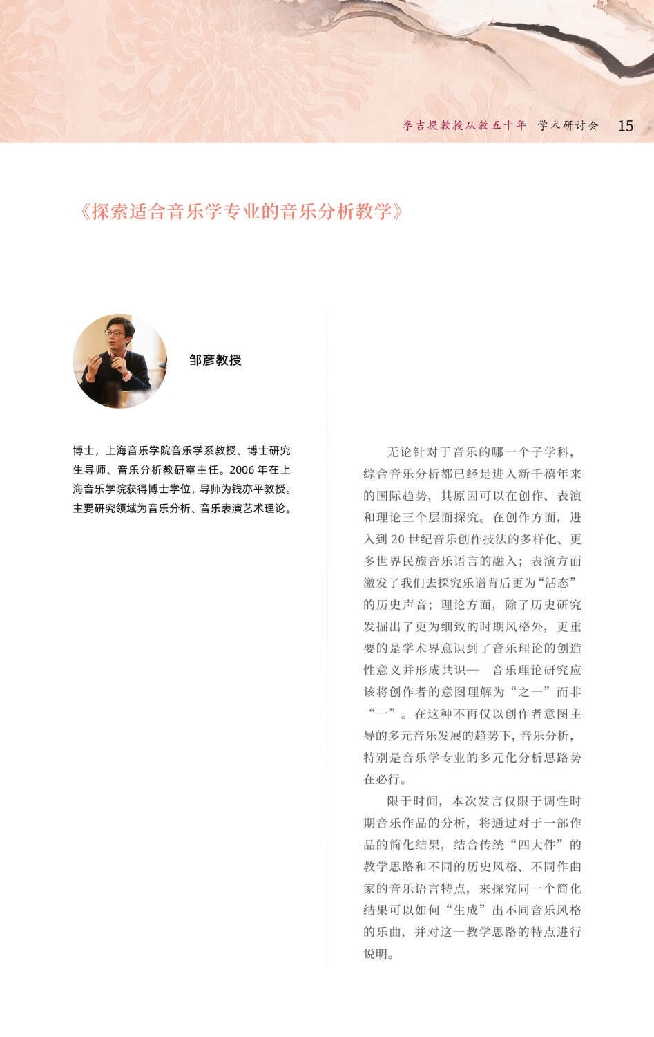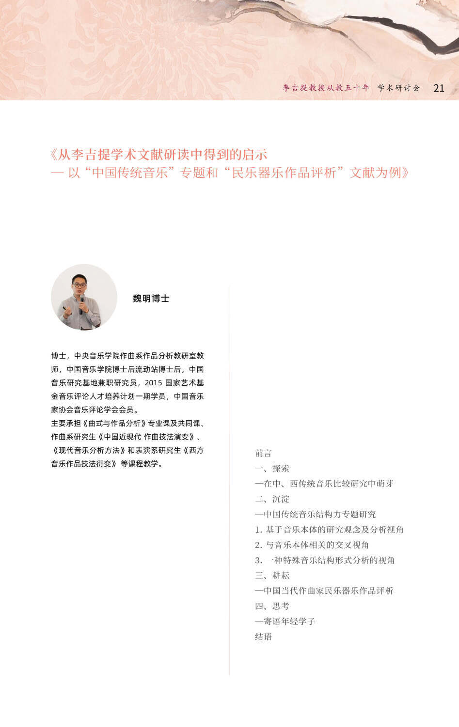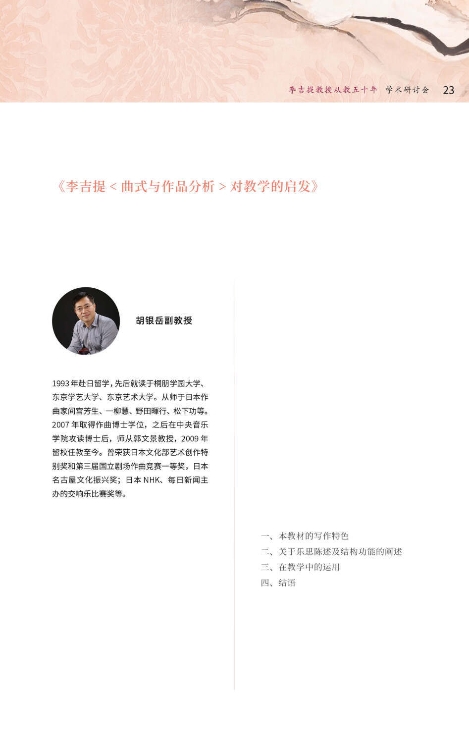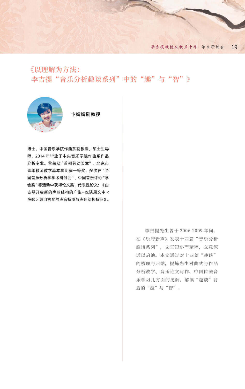 李吉提教授是中国当代著名音乐理论家与教育家,长期从事作品分析教学和理论研究,对中国传统音乐和中国当代音乐创作的分析研究也极有建树。李吉提教授是国务院政府特殊津贴获得者,曾任kaiyun体育网页登录入口作曲系副系主任、作品分析教研室主任和博士生导师。出版《中国音乐结构分析概论》《中国当代音乐分析》及《曲式与作品分析》教程等。先后在kaiyun体育网页登录入口学报、《音乐研究》和《人民音乐》等刊物上发表过百余篇音乐论文。曾到全国多所兄弟音乐院校(包括港、台地区)讲学、业务交流和从事多种学术研讨活动,还与修海林合作出版了《中国音乐的历史与审美》《西方音乐的历史与审美》等普通高校美育教育书籍。与卞祖善一起为中央电视台“广播电视大学”的“中国音乐名家名作”课程编写录制课件、并成套演播。近年来还参与了kaiyun官网国家重点课题“中国歌剧重大问题研究”的子课题写作。2021年获中国民族管弦乐学会颁发的奖杯和“民乐艺术终身贡献荣誉称号”。