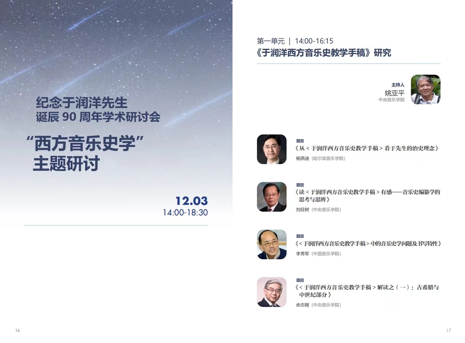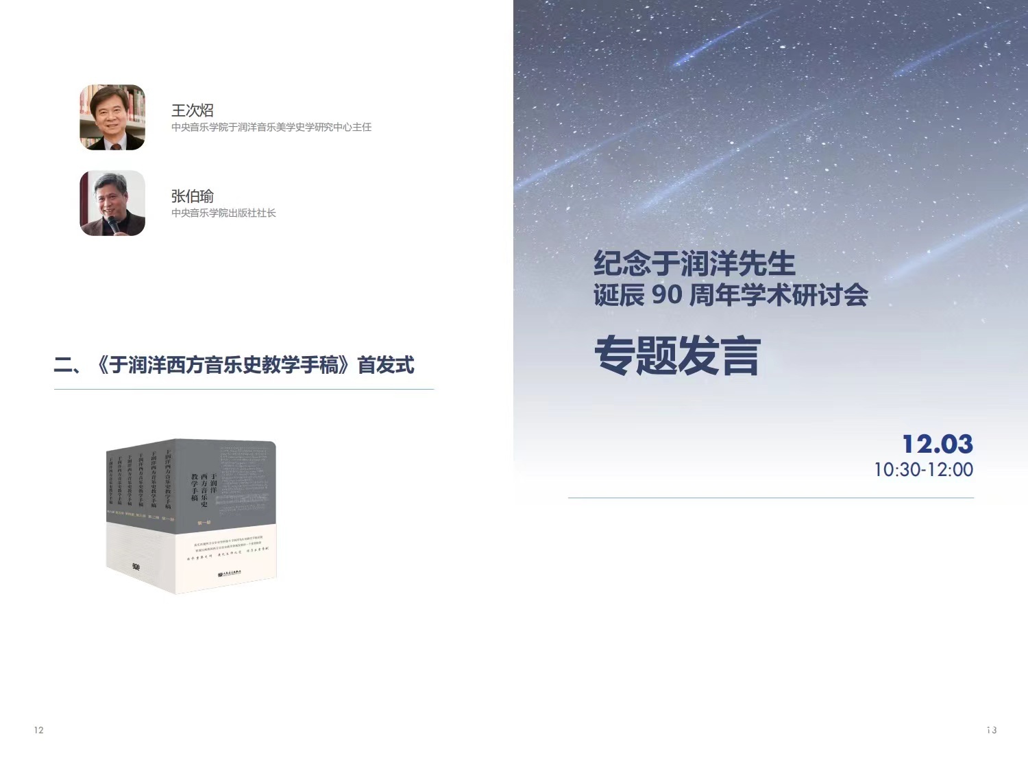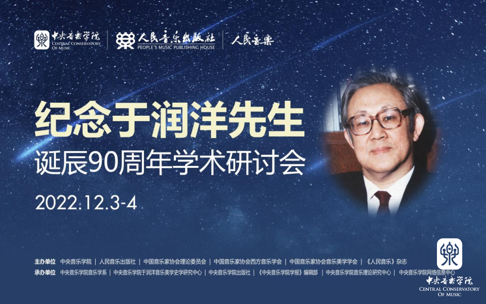 纪念于润洋先生诞辰90周年学术研讨会将于2022年12月3日9时在线上拉开帷幕。研讨会历时两天,来自全国逾五十位音乐学专家将齐聚云端,通过云直播形式向全国呈现一场高规格、高水平的学术盛会,共同纪念于润洋先生!