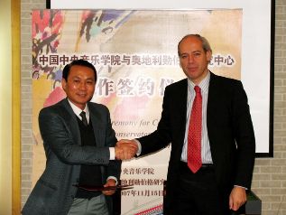 合作意向书内容包括在kaiyun官网建立勋伯格研究中心(设在音乐学研究所),两家单位联合主办和组织面向国内音乐院校学生的各类比赛(获奖选手将赴奥访问),以及大师班讲学、学者互访、专题学术研讨会、大型主题展览等活动。在谈到具体的合作计划时,迈耶博士介绍说,他们已为今后三至五年内的合作计划制定了五万欧元的预算。双方正式合作将始于12月举行的“kaiyun体育网页登录入口音乐节”,而2009年春季将在kaiyun官网举办的亚洲首次勋伯格音乐手稿、图片、绘画以及历史照片展览则是这一阶段合作计划的重点。