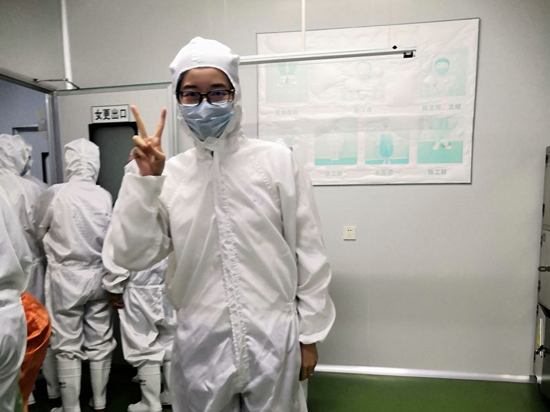 随后,在管理人员的带领下,大家穿戴好工服并经过严格的除尘和消毒后,进入蛋糕生产车间实地参观。大家亲眼目睹了整个生产车间的高标准卫生条件、高品质新鲜食材以及工人们专业的操作技能。