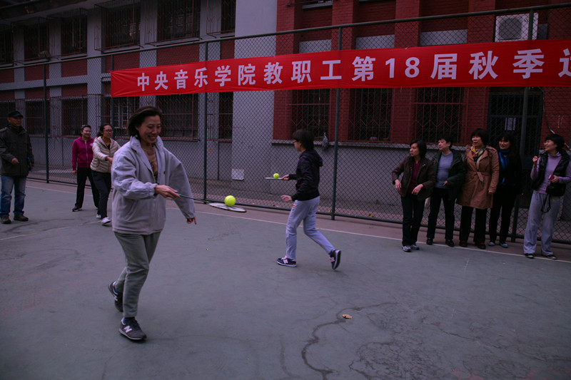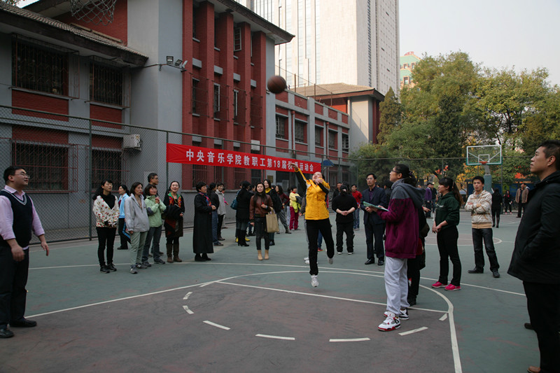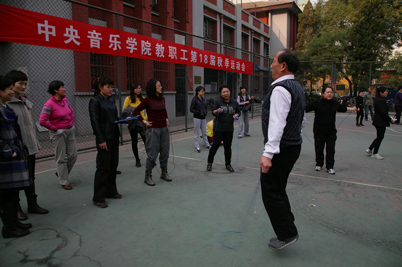 本次的运动会的主题是“我健康我快乐,共建和谐校园”。运动会由集体项目和个人单项比赛组成,既包括竞技比赛项目跳绳、定点投篮、沙包掷准、推铁环跑等,也有益智项目象棋、围棋、跳棋等棋类比赛。只见老师们三五成群认真的准备比赛,操场上一改往日的沉寂,不时传来喝彩声。
