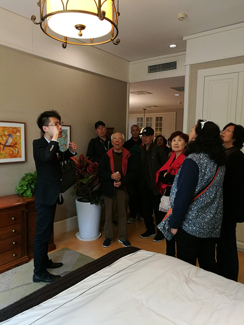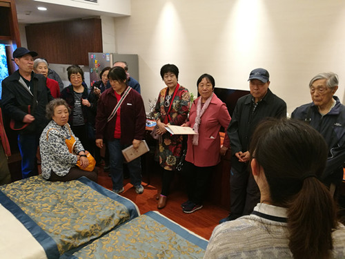泰康之家·燕园,它是泰康之家首个旗舰医养社区,位于北京市昌平新城的核心区域, 2015年6月开业运营。遵循国际成熟医养社区选址经验,泰康之家对区位、环境、配套有着多重苛求。引入了国际领先的养老模式【CCRC】,以专业化员工队伍为保障,在舒适居住环境的基础上,根据居民的不同年龄阶段和健康状态,设有独立生活、协助生活、专业护理、记忆照护四个不同业态,实现尊重生命活力与健康的高品质舒适养老生活方式。老同志们非常认真参观样板间,并详细听工作人员有关入住方式的讲解。