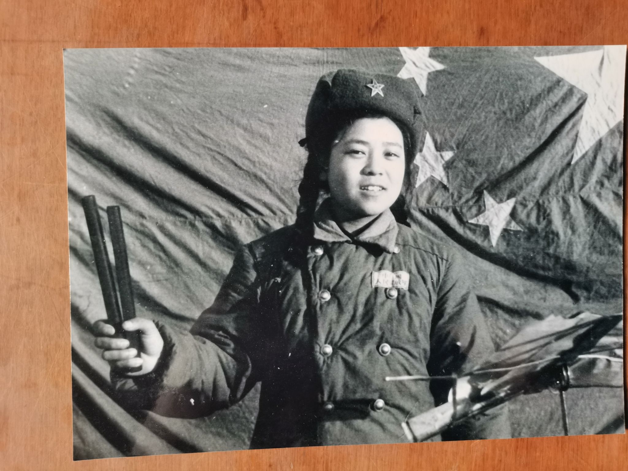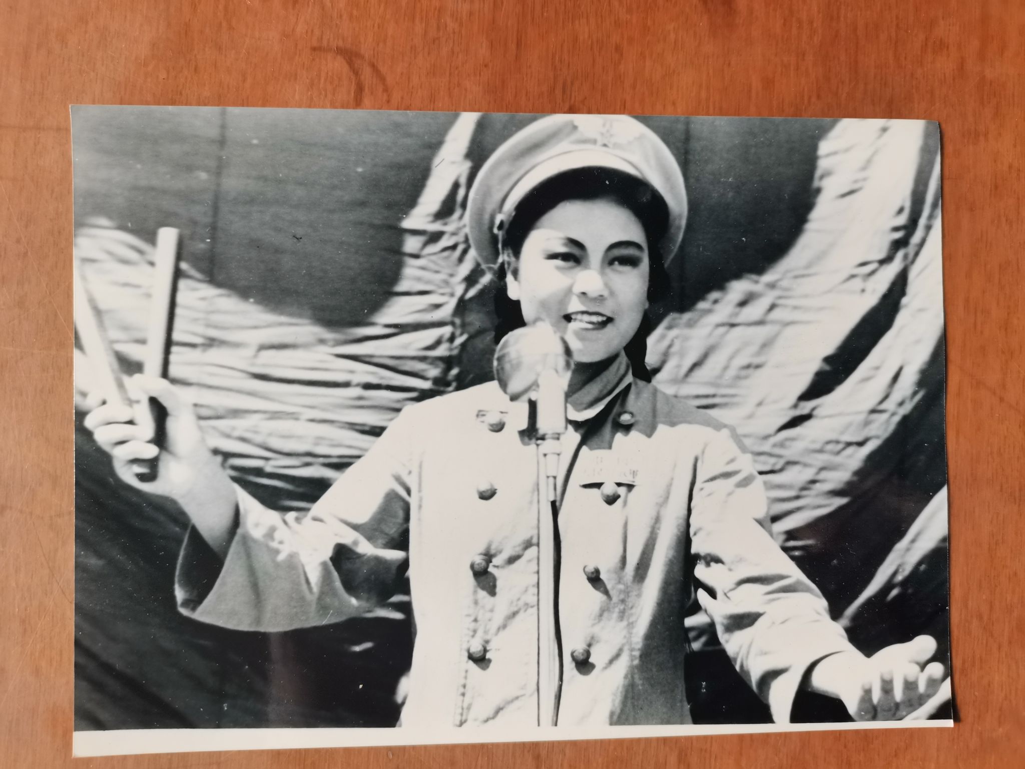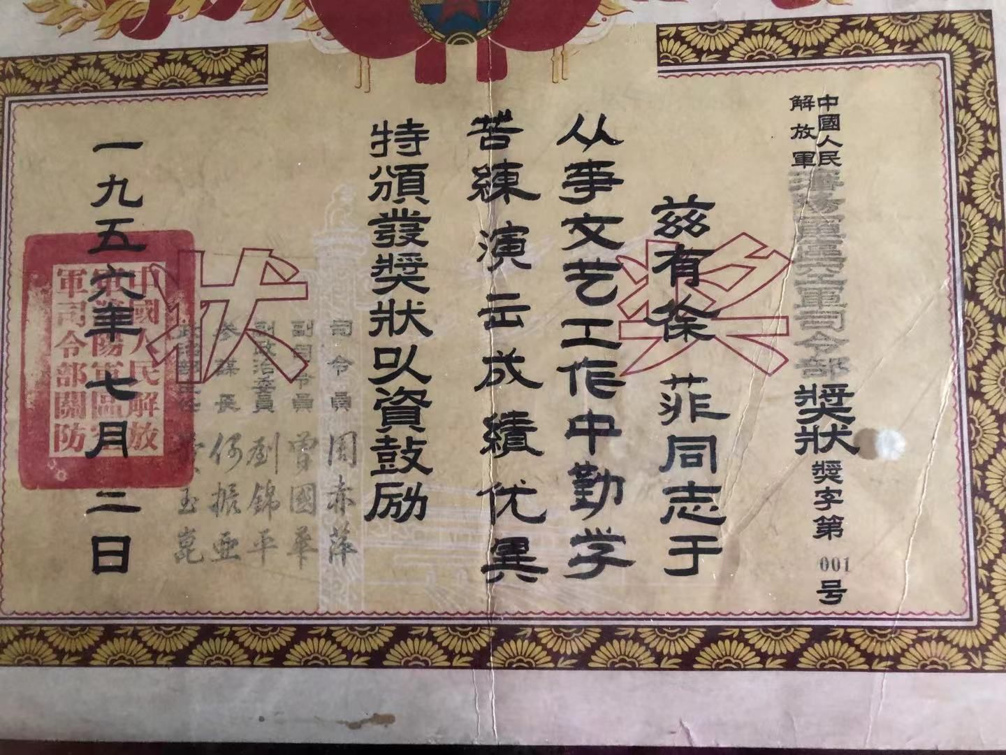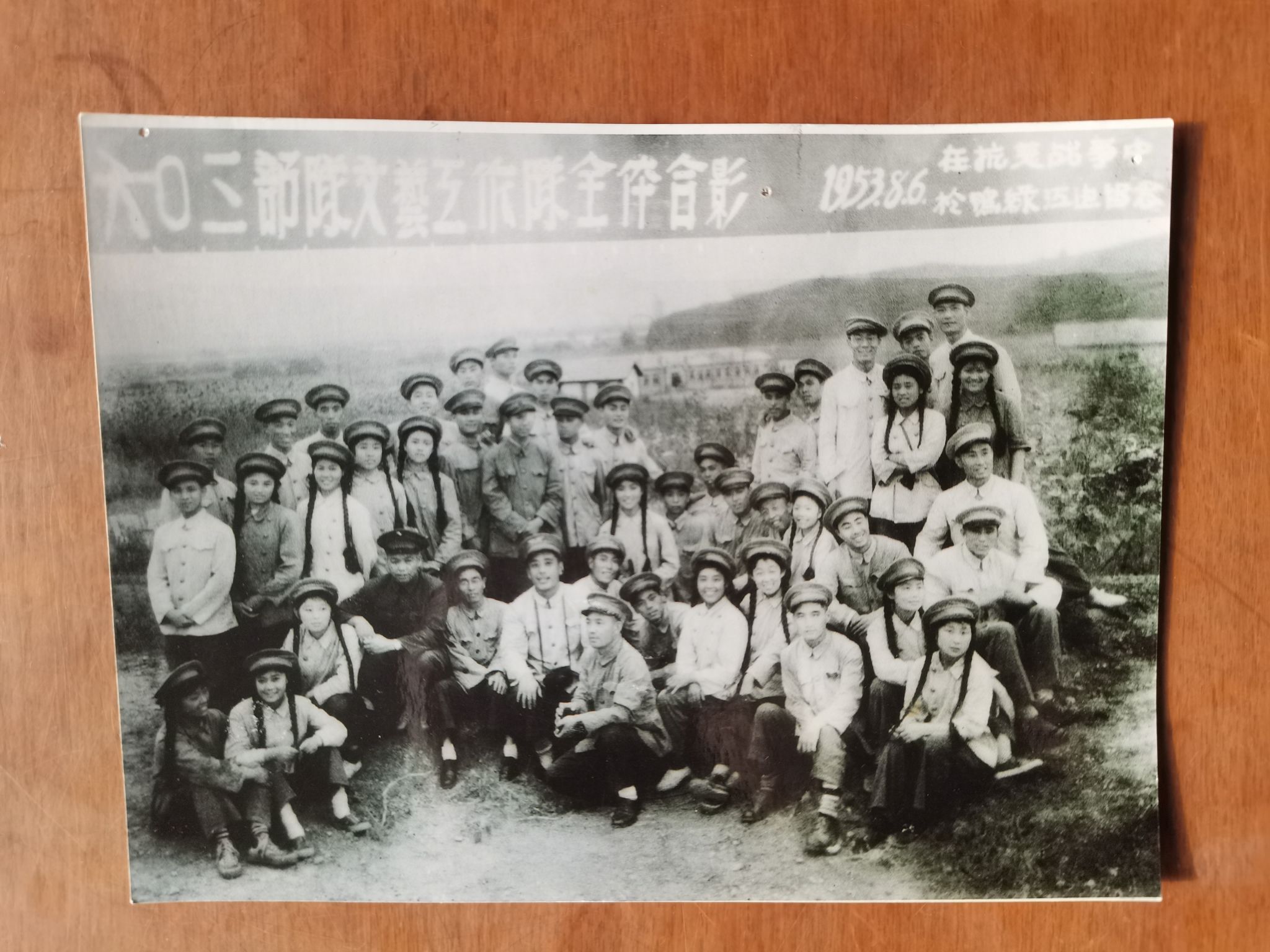 我记得有一次我们到一个山里去为志愿军战士演出,住在山上一间草房里,为了安全男、女队员同住,房子中间用雨布隔开。有一天晚上演出用的河南坠子鼓和架子忘在山上了,我急死了,道具由我负责的, 一个人夜晚上山很害怕,后来是战友自告奋勇陪我摸黑上山去拿回道具,想想真是后怕,那时候随时可能遇到特务。