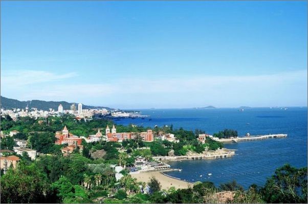 坐落在海中的鼓浪屿的上空,其云彩的无穷变幻,更是引人入胜。浓淡不一,形态万千的云朵,随海风的吹拂翩翩起舞,自由飘荡,随变幻的日、月光芒装扮得时而光华万丈,时而深邃的令人遐想。以这奇异变化的天空为远景,观赏旖旎的地面上的风光,鼓浪屿真叫是:处处都是景、时时各不同,。看也看不够。说也说不尽。