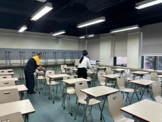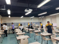 为保障学生考试正常开展,物业服务中心提前针对涉及考场做水电排查、卫生清洁消杀工作,管理人员布置座椅、张贴名牌。全力保障考试顺利进行。
