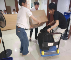 在这个繁忙的日子里,保洁员们化身学生们贴心的助手,穿梭在各个楼宇之间,用自己并不强壮的肩膀扛起学生们沉甸甸的行李。每一次的搬运都是一次无声祝福;每一滴汗水的落下都是对学生未来的期许。