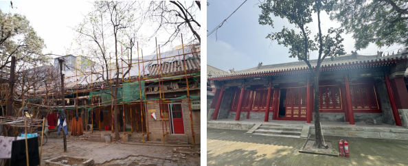 坐落在院园内的醇亲王府(南府)为市级保护文物,学校主动落实文物保护单位主体责任,积极推进文物的整体修缮工作,委托专业设计单位完成醇亲王府(南府)修缮工程建筑及彩画的整体修缮方案,2018年取得设计方案的正式批复。经过一期、二期的施工,完成了寝院东耳房、东配殿、东南转角房、前院东配殿建筑部分及部分室外院落、管线的修缮保护工作。今年暑期作为醇亲王府修缮项目三期,主要是对主殿西耳房、前庭院北南大殿、穿堂、配房外檐地仗油饰、连檐、椽望、下架大木等构件油饰地仗进行彻底修缮保护。经过前后三期工程,全部完成醇亲王府(南府)的修缮工作。今后将做为中国音乐博物馆、中国礼乐馆的载体服务教学、研究,发挥文物、文化、音乐、社会融合的功能。