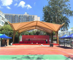 在繁华喧嚣的二环内,kaiyun官网以独到的创意与前瞻性的规划,成功将运动与音乐美学的精髓相融合,于运动场东半部巧妙利用垂直空间,构建起一座多功能棚架,其设计巧妙融合了运动活力与音乐韵律,以流线型的结构勾勒出动感十足的轮廓,成为开学之际学生军训时一道引人注目的风景线。同时具备室外会议主席台等多重功能,为各类户外集会、讲座及文化活动提供了理想的场所。这里将见证无数思想碰撞的火花,成为学术交流与文化传播的新高地。