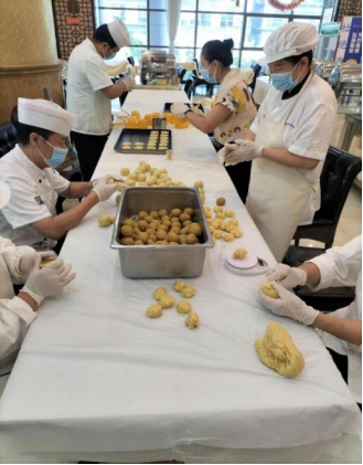 今年月饼制作的最大亮点,在于其纯手工与无糖的特性。每一枚月饼,从和面、包馅到成型、烘烤,全部出自餐厅员工之手,他们凭借着精湛的技艺与对美食的热爱,将每一道工序都做到了极致,力求让每一口月饼都能传递出手作的温度与心意。为了满足师生控制糖分摄入的需要,餐厅特别选用了低糖配方,精心打造出了无糖月饼,让美味与健康并存。