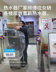 为了给学生们提供安全、卫生的宿舍环境,寒假期间对楼内公共设备设施进行了维修,更换了新的饮水机,对所有卫生间集中进行了打扫,对公寓楼内做了整体消杀,并对公共区域进行了全面清理等等。