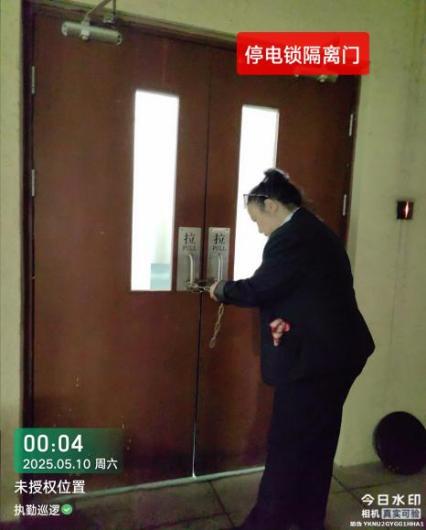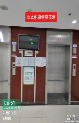 来电后工作:05:55分正式恢复供电,值班老师第一时间开启每个楼层隔断门锁并确认电磁锁正常锁闭,确保各楼宇电梯正常运行。