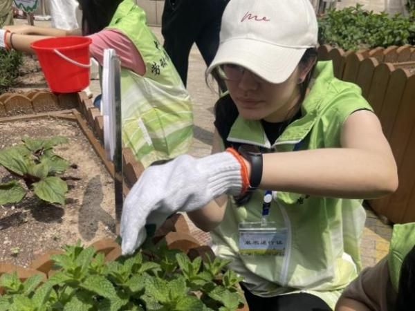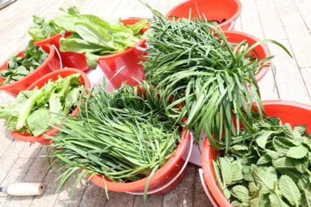 “央音小农夫”初夏采摘活动当日,将学生们将采收的韭菜、紫苏、油麦菜、薄荷等新鲜食材直供食堂后厨,经食堂食材验收员验收后,交给厨师们。