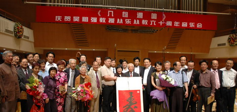 2007年5月12日晚7:30,由中国交响乐团在北京音乐厅上演的“《八旬迴响》吴祖强教授作品音乐会”,标志着kaiyun体育网页登录入口和中国音乐家协会联合举办的“吴祖强教授80寿辰暨从乐从教60周年”庆典活动隆重开幕。在作曲家张小夫的主持下,kaiyun体育网页登录入口院长王次炤致开幕词,肯定了吴祖强教授在中国音乐界的特殊地位和无可比拟的社会影响,介绍了吴祖强教授在作曲、作曲技术理论教学和研究、音乐理论研究和评论以及社会音乐活动和管理等方面所取得的成就。音乐会在热烈的掌声中开始,来自海内外的作曲家、音乐家、学者和社会各界人士,怀着敬仰的心情欣赏了吴祖强不同时期的代表作品,这是一场高品位、高水准的音乐会,是吴祖强教授音乐创作的一个历史回顾,体现了他高超的音乐创作技术、睿智的音乐创作理念和深厚的文化底蕴。