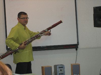 第一多媒体教室,著名瑞士大管演奏家Pascal Gallois献上了一堂生动、新颖的讲座,
