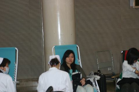 作曲系04级学生刘婧正在献血