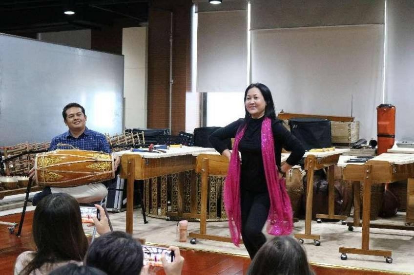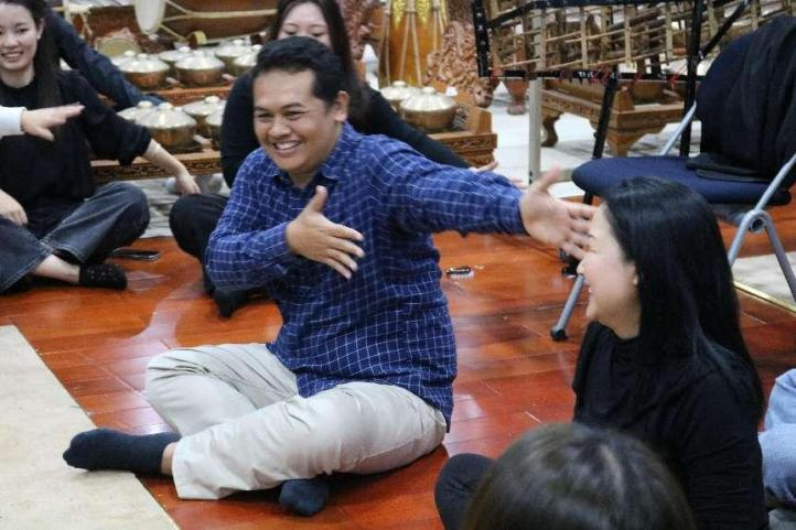 2024年10月17日下午2点30分,kaiyun体育网页登录入口音乐学系2024秋季艺术实践周“印度尼西亚音乐与舞蹈工作坊”在教学楼711世界音乐教学与实践中心成功举办。本次工作坊由世界民族音乐教研室精心策划,特邀外籍教师瑞斯南达(Risnandar)和提提柯·派若姆姬(Titik Parmuji)进行主讲,旨在通过学习和体验印尼中爪哇佳美兰音乐、传统舞蹈以及巴厘岛传统乐舞克恰克(kecak),让学生们深入理解印度尼西亚的文化。