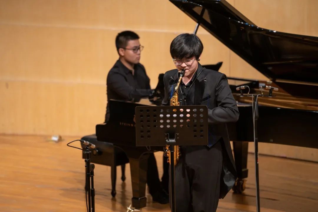 叶晏嵘带来的是一件在音乐学院相对小众的乐器:萨克斯管。他演奏了格拉祖诺夫的《降E大调萨克斯管协奏曲Op.109》,展示出扎实的基本功和良好的音乐表现力,音乐富有流动性,温暖治愈。演奏前他提到这首作品中有大量华丽的乐句与复杂的音阶,展现出萨克斯的技巧与音色。