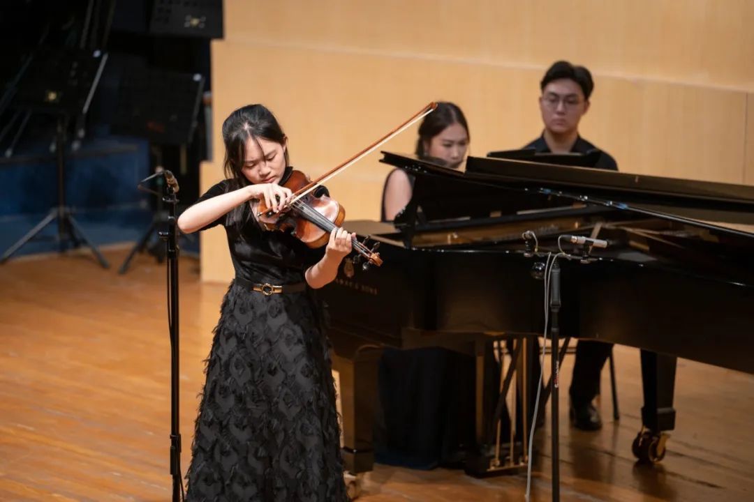 我们惊喜地看到,这场音乐会在“演”上也达到了很高的专业水准。林妤和马艺馨带来的钢琴与二胡作品《雪山魂塑》,以二胡和钢琴热情奔放的段落开始,中间的旋律优美抒情,最后回归到更加自由欢快且炫技的演奏中,马艺馨的二胡演奏在技艺和艺术水准上都达到了很高的水平。