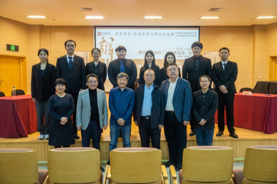 赛后,比赛特邀评委、辩论专家、中央民族大学沈澈老师从辩论技巧和逻辑交锋的角度进行了点评,高度赞誉了双方选手的表现,并就辩手需要提高的方面提出了恳切的建议。随后,音乐学系何宽钊教授、班丽霞教授、黄宗权教授和作曲系郝维亚教授、唐建平教授、贾国平教授作为助阵嘉宾上台发言,对辩手们的表现进行了评价及建议,并就相关话题进行了探讨。何宽钊教授指出:“也许设定的立场并非辩手们的真正立场,但是通过立场置换让大家产生共情,促使大家站在另一个立场去思考问题,培养同学们养成包容性的倾听、理解能力。”郝维亚教授强调:“辩得很好。但是辩的目的是什么?清晰!如果你热爱现代音乐创作,你就会由此知道你为什么而写。”场上嘉宾一致认同,在场同学们纷纷表示受益匪浅,直呼“这是一场酣畅淋漓的辩论友谊赛”!