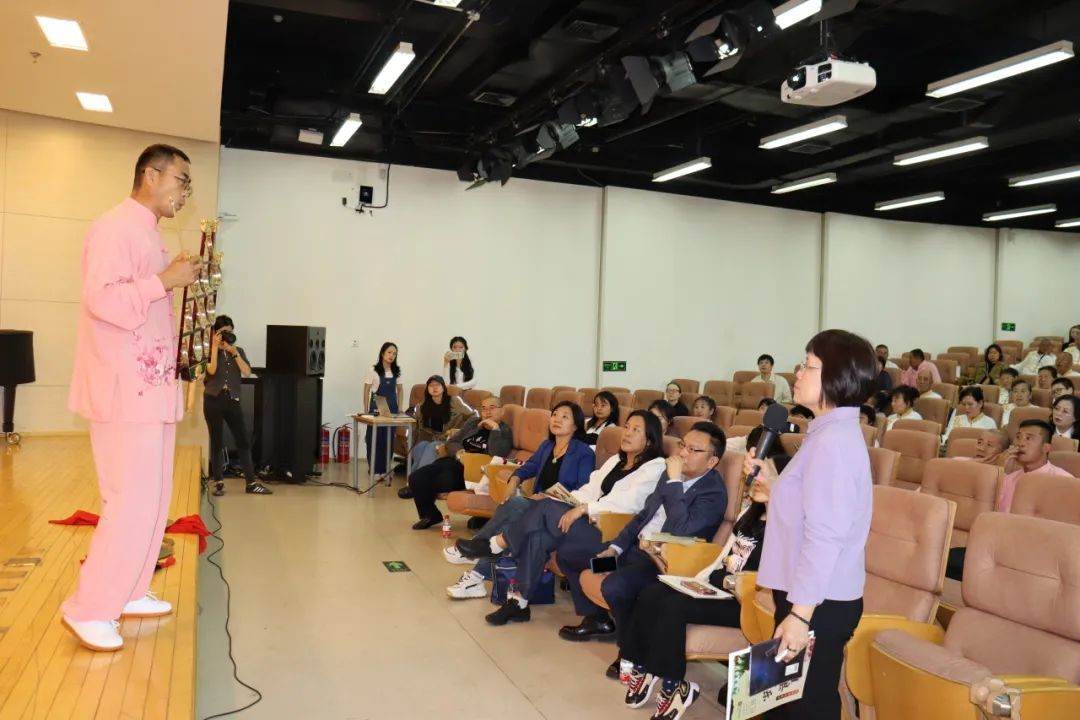 为了更好地体会工尺谱韵唱中“阿口”的润腔规律,亚古城音乐会会长史军平现场教唱了一首《左登赞》。现场气氛热烈,老师和同学们认真学唱,并与乐师们积极交流与互动。