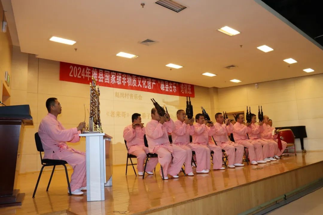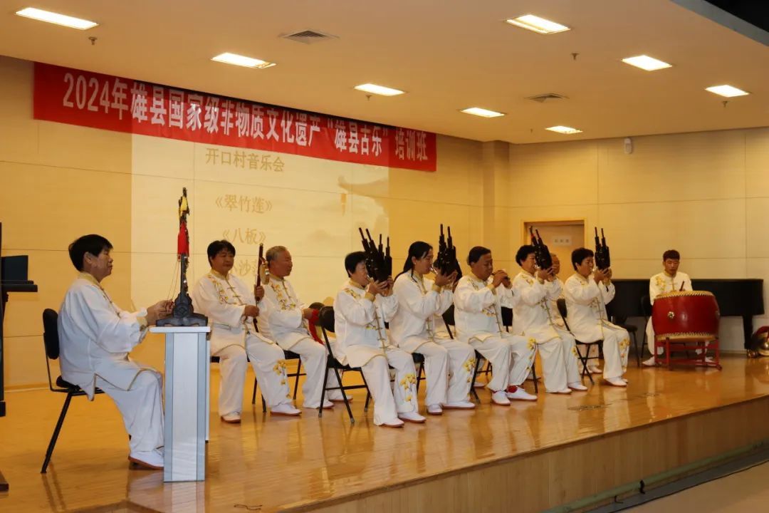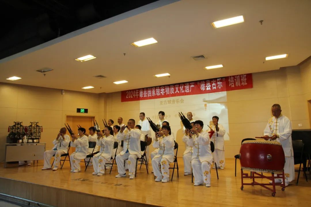 “雄县古乐”是指广泛流传于河北省雄县各个村落的传统笙管乐。2006年起,由雄县的亚古城音乐会、开口音乐会、杜庄音乐会和赵岗音乐会四个乐社,联合以“雄县古乐”为名申报省级非遗项目成功,后于2008年又进一步获批列入国家级非物质文化遗产名录。本次活动参演的正是这四家乐社。