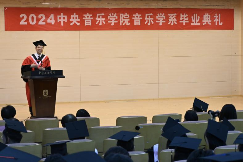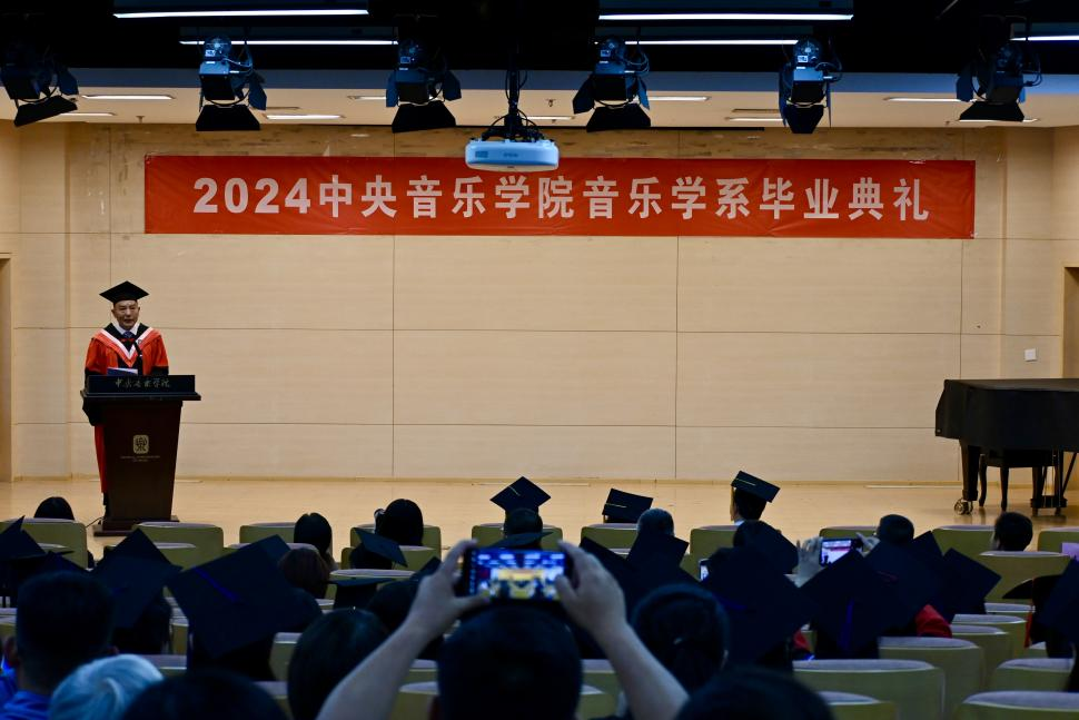 一路长歌,奔赴山海,6月25日中午,kaiyun体育网页登录入口音乐学系在701报告厅隆重举行2024年毕业典礼。校党委副书记苗建华、副院长柯杨、原院长王次炤、系主任何宽钊、系党总支书记吴晓萍、副系主任刘小龙、教务处处长汤琼、周海宏教授等多位老师与毕业生和他们的亲友共同见证这一美好的时刻,给予我系毕业生以最真挚的祝福和殷切的嘱托。在这个收获圆满而又即将分别的时刻,老师、同学和亲友们带着对音乐学系的深厚情感,回顾音乐学系大家庭的温暖、总结在央音学习的成长与收获,并一同将最美好的期盼献给未来。