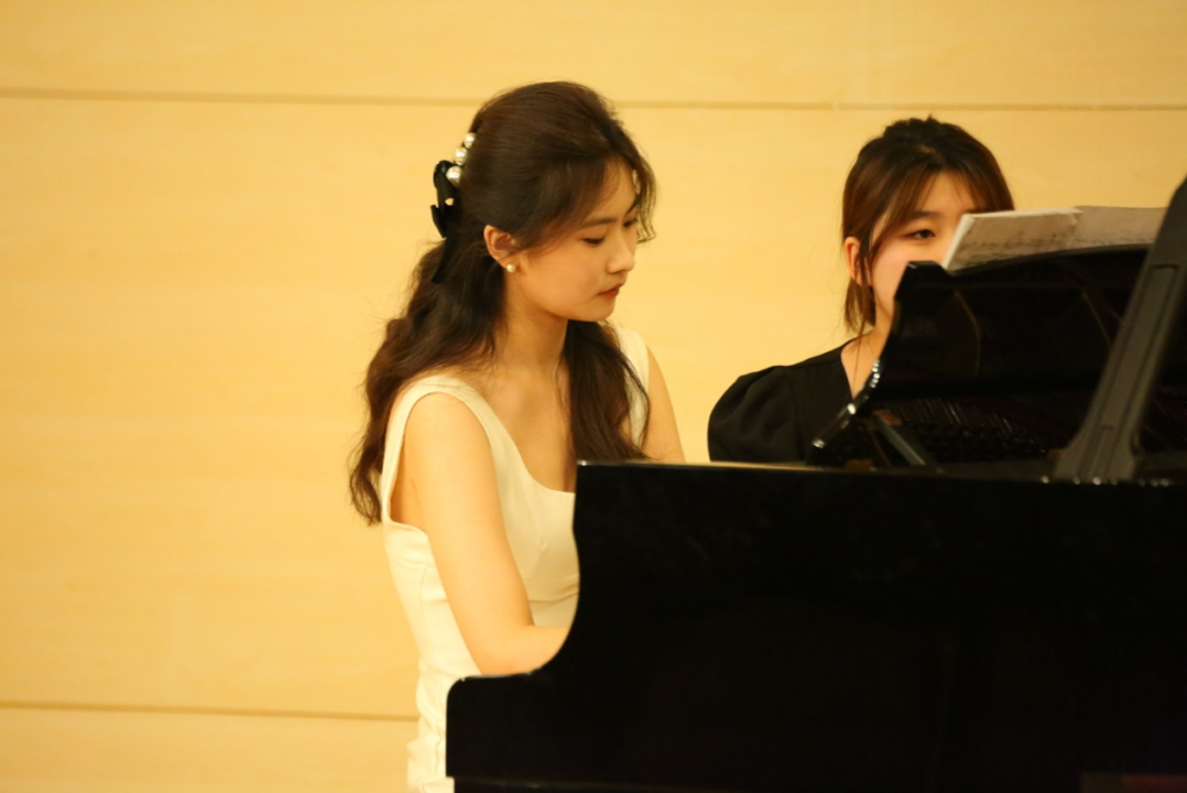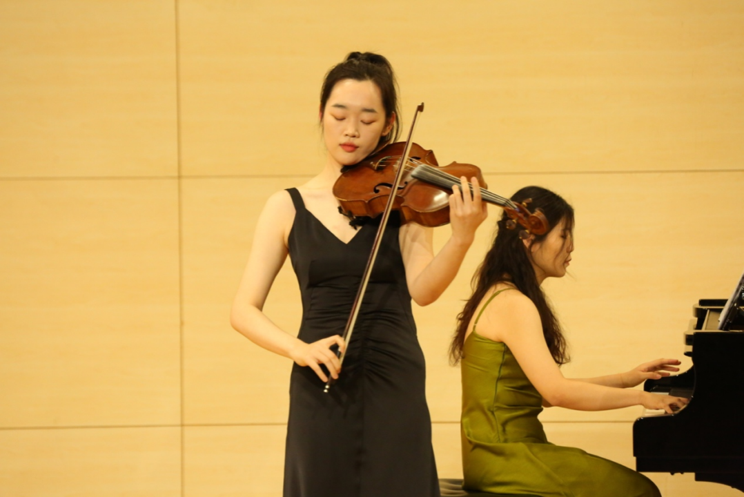 外国作品方面,一年级博士研究生吕昌演奏了奥托·凯汀的小号曲《前奏曲》,展现了作曲家对所处时代精神危机的思考及其本人的“当代”气质;二年级本科生蒋伊涵演奏了海顿的《降E大调钢琴奏鸣曲》,反映了当时伦敦的繁荣景象和海顿成熟的创作风格;二年级本科生张雨桐演奏了贝多芬的《降A大调第31钢琴奏鸣曲》,展现了作曲家丰富的音乐内容和深刻的内心独白;一年级本科生李天泽演奏了勃拉姆斯的《间奏曲》,其中饱含作曲家对克拉拉·舒曼的情感;二年级硕士研究生管昊和胡诗杰演奏了皮亚佐拉的《华丽大探戈》,展现了探戈音乐中融合古典和爵士元素的创作思维;二年级本科生赵晗竹、吕岫峪、孙迪拉和王佳雨演奏了四重奏《热烈与自由》,用乐曲串烧表达了他们对“热烈”与“自由”的理解与追求。