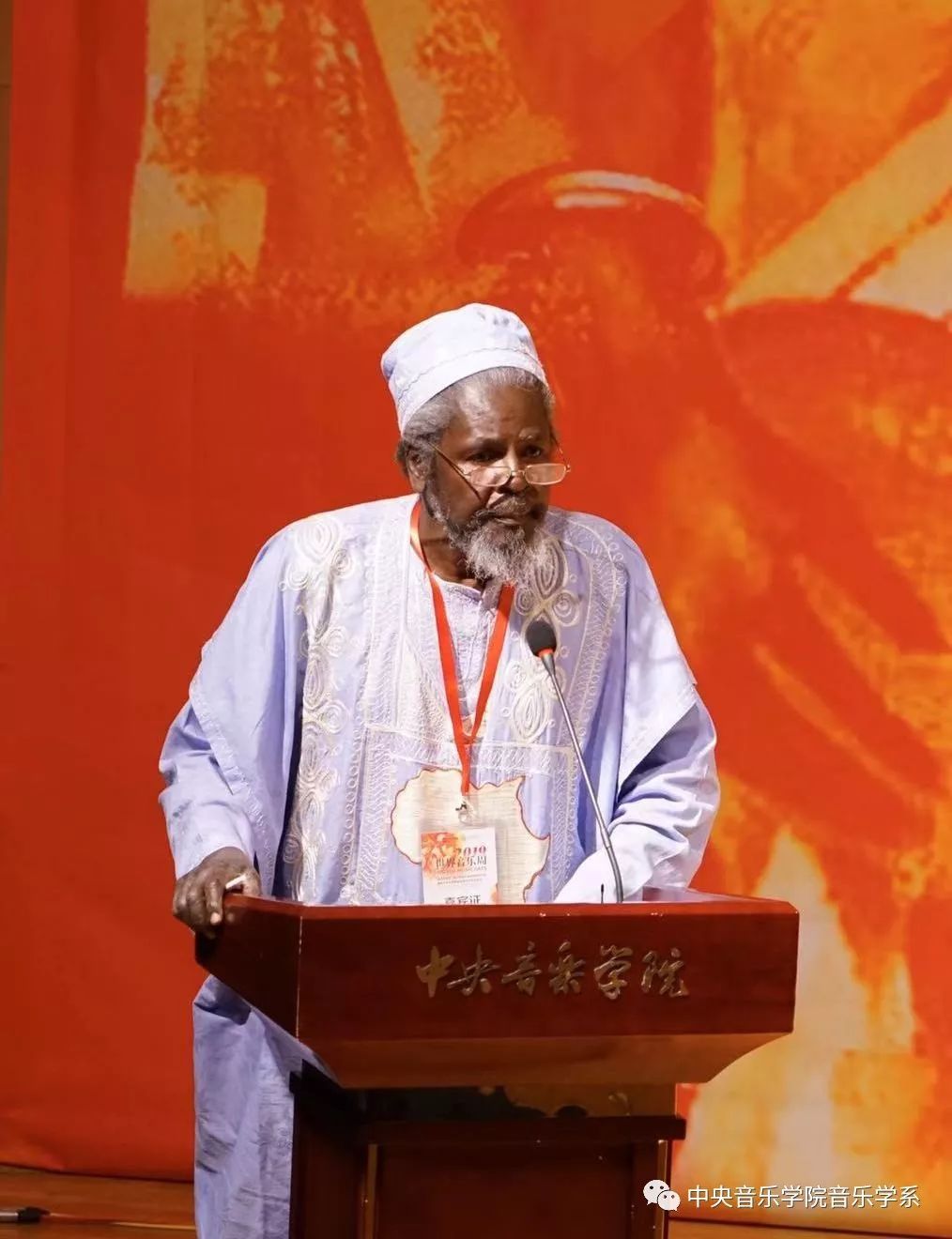 随后,肯尼亚查尔斯·尼亚基蒂·奥拉沃教授表示,很荣幸能被邀请参加此次世界音乐周活动,同时很高兴向大家分享非洲的音乐,介绍来自非洲的歌曲及舞蹈,并在致辞过程中向大家展示了肯尼亚的国旗。