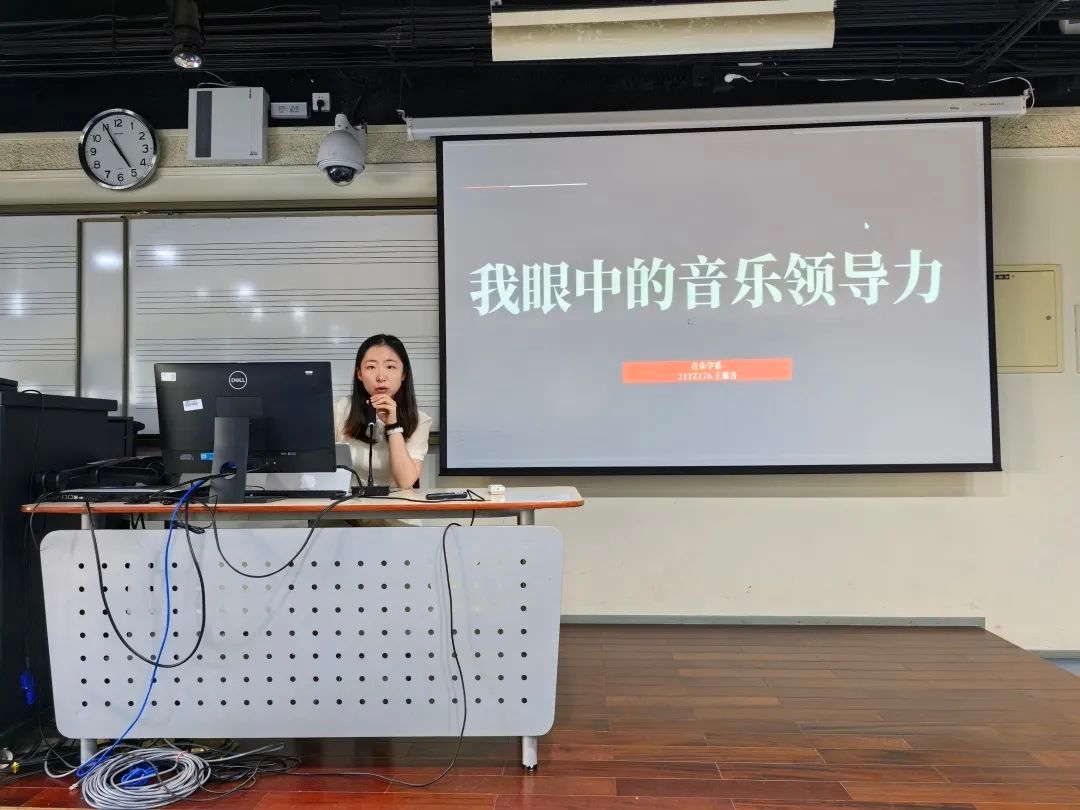 2021级研究生党支部书记王雅各从艺术管理的角度,以“我眼中的音乐领导力”为题展开分享。