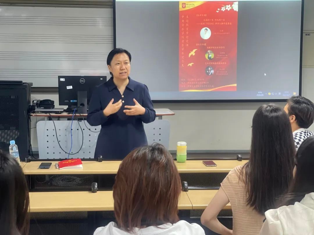 2022级研究生党支部书记毕潇丹首先介绍了此次专题党课海报设计的构思,并由此引出她所讲述的主题。