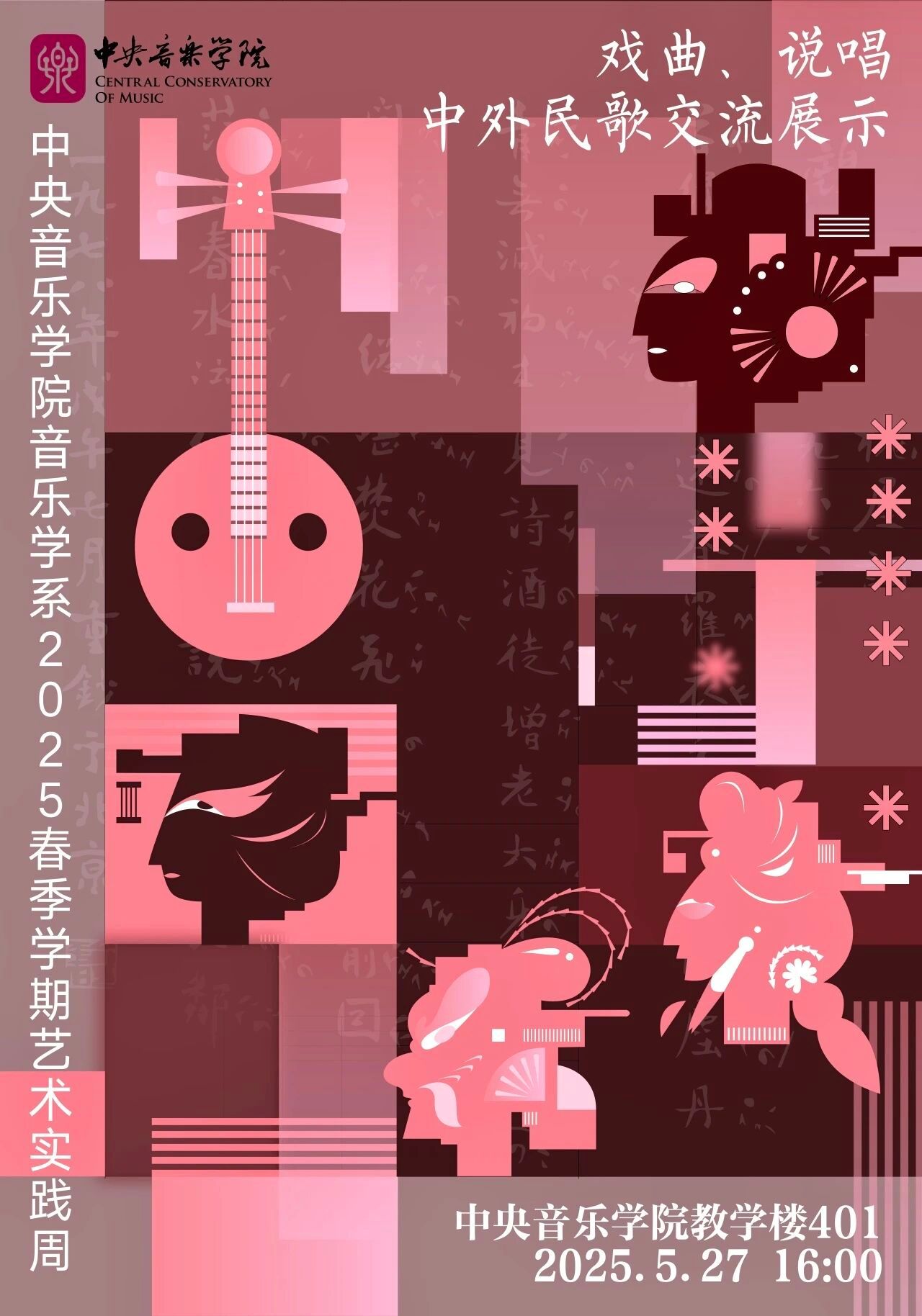 本次音乐学系2025年春季艺术实践周"戏曲、说唱、中外民歌交流展示"活动将以"多元对话·融合表达"为内核,通过戏曲的韵律之美、说唱的即兴张力与中外民歌的淳朴风情,搭建起传统与现代、本土与国际的桥梁。本次活动既有非遗戏曲的活化重现,亦有民歌、童谣的碰撞共生,更有学术思考的舞台转化。每段旋律皆是文化基因的显影,每次演绎皆为理论思辨的具象化实践,每一幕皆是实践与理论的共舞、传统与创新的交响。