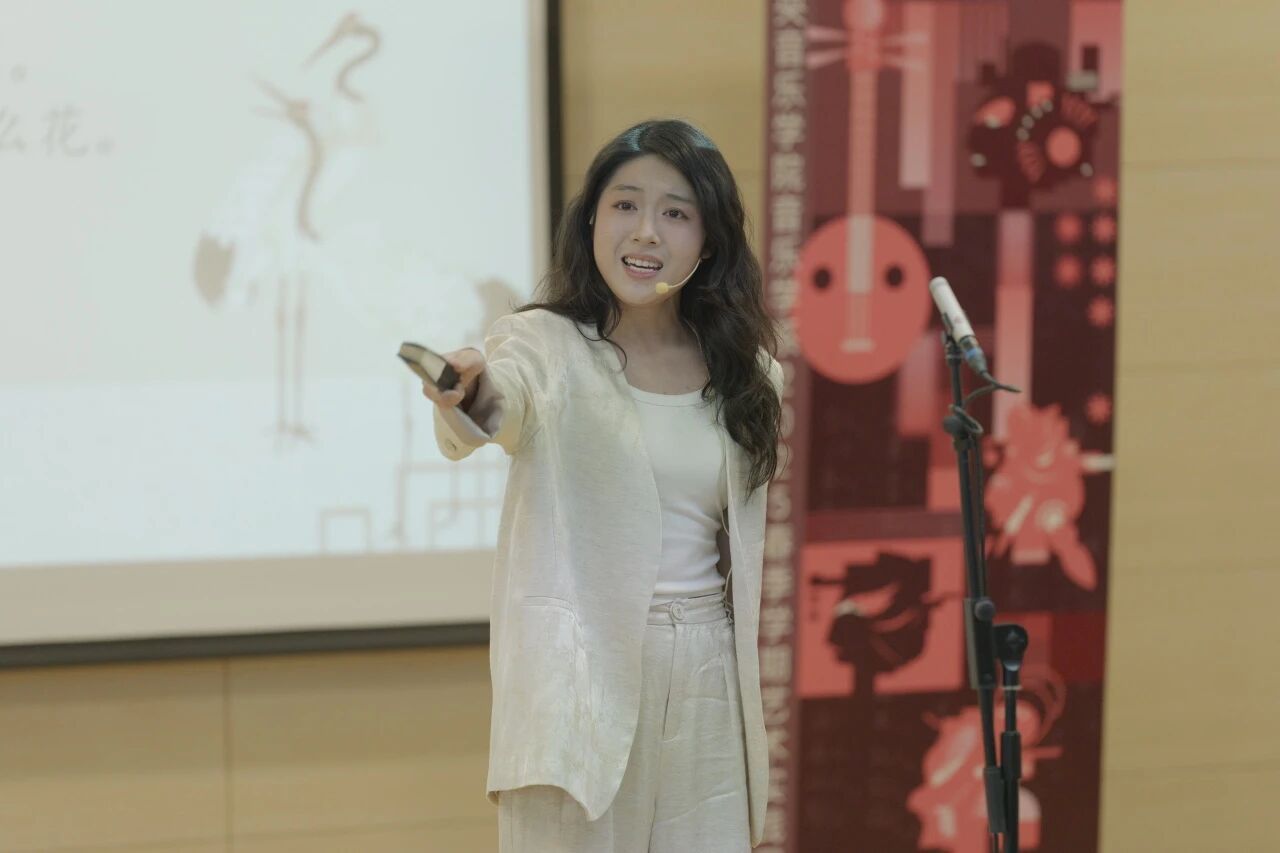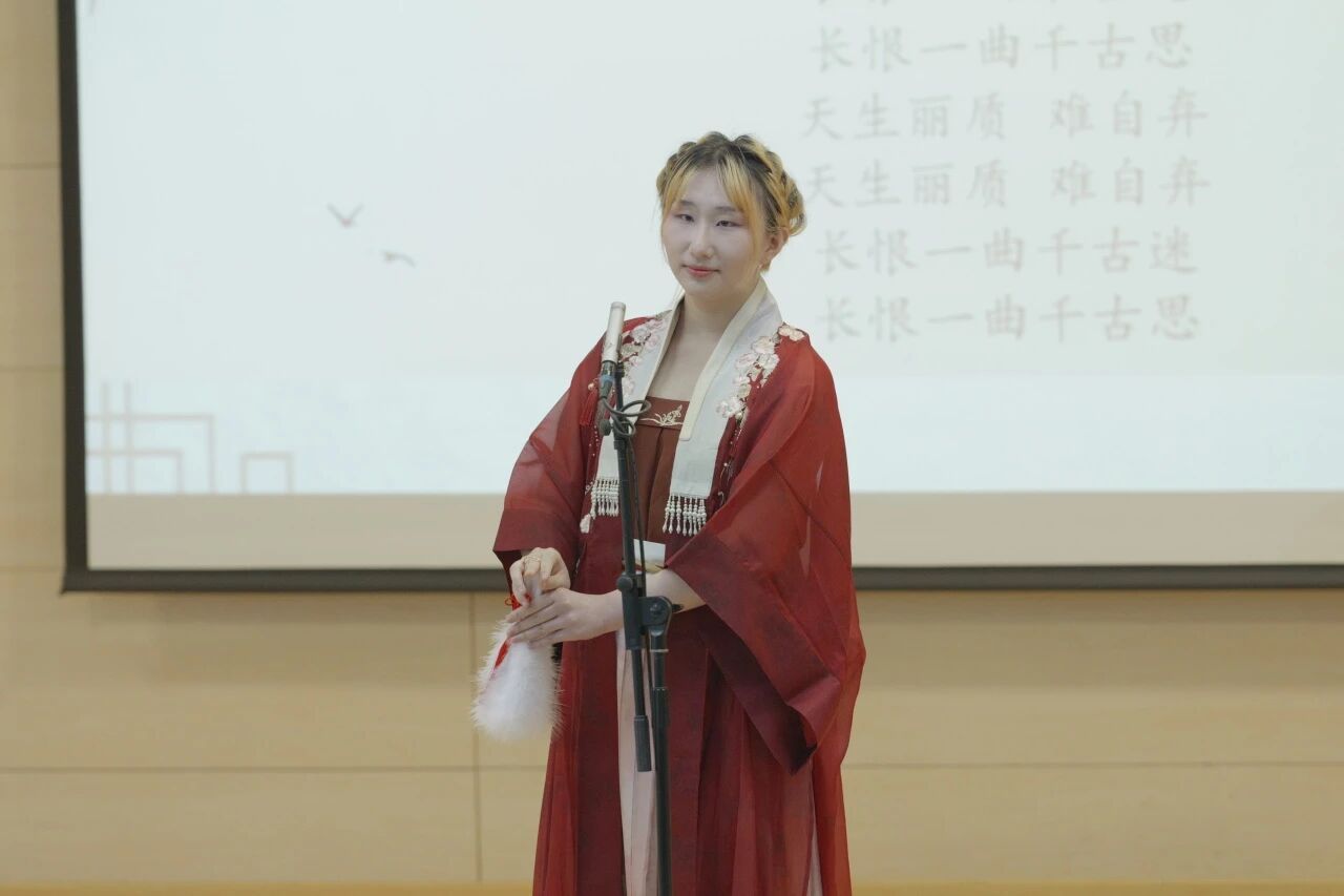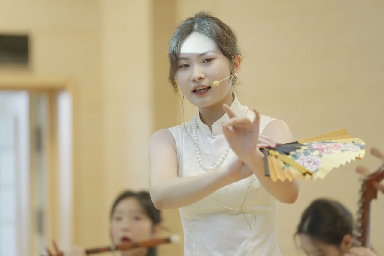 演唱者张雨桐演绎的《皂罗袍》选段,在张熙的曲笛、谭笑的琵琶与彭睿萱的鼓板的悠扬伴奏下,尽显昆曲的婉约典雅。手执扇子道具,她身段轻盈,唱腔细腻缠绵。这一选段的选择,深刻体现了表演者们对中华古典美学精髓的深刻理解与传承创新的探索意愿。