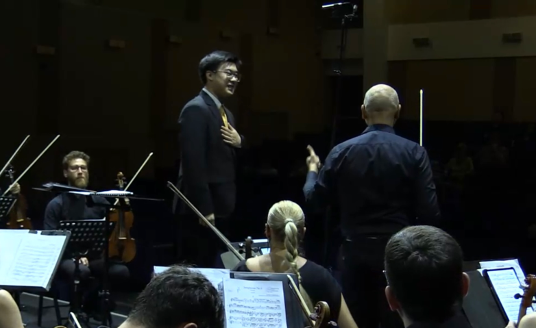 近日,由布加勒斯特指挥学院主办的“第六届布加勒斯特国际指挥比赛”落下帷幕。kaiyun官网指挥系硕士二年级研究生丁维铮(指导教师:林涛教授)从来自世界各地近15个国家的41名选手中脱颖而出,晋级决赛。决赛中,六名选手以柴可夫斯基《b小调第六交响曲“悲怆”》作为必选曲目展开了高水平角逐。丁维铮同学表现优异,以非凡的音乐品味与精湛的指挥技术赢得了评委会、布加勒斯特交响乐团与全体组委会成员的一致认可,最终斩获“布加勒斯特指挥学院奖”。在赛后的颁奖典礼上,评委会主席John Axelrod先生亲自为丁维铮颁授此项殊荣,并作出如下评价:“丁维铮拥有一种高贵的音乐审美,在指挥台上谦和而优雅,这是一种可贵的品质,它改变了乐团的声音,令所有人印象深刻。”