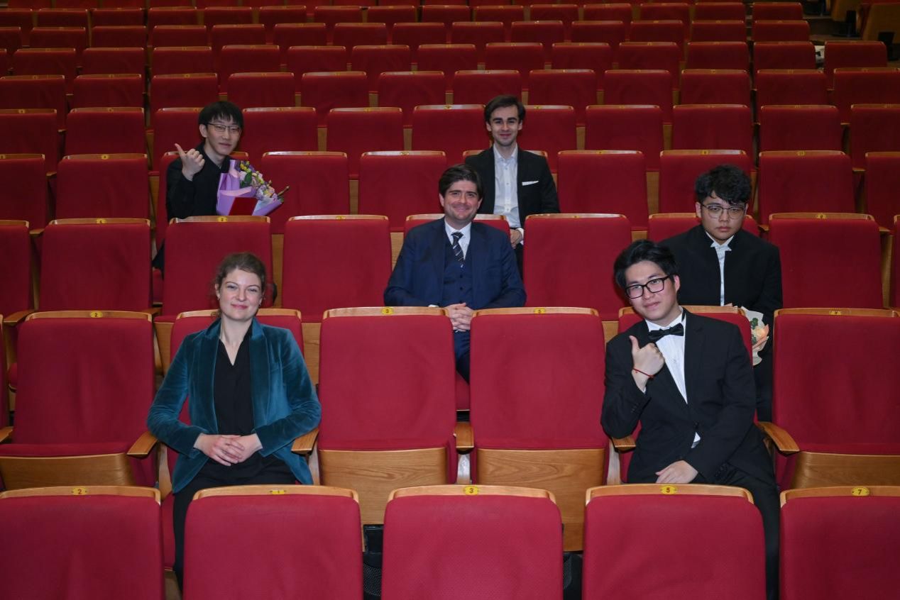 作为一名热爱法国音乐、研究法国音乐的中国青年指挥学员,参加本次中法国际指挥大师班为我打开了一扇极其宝贵的窗。正如法方同学曾向我感叹,俞峰老师将技术与艺术在令人仰望的高度上实现了统一,因此我们作为学员在课堂中收获的成长是非常多维和全面的。此外,在此次大师班授课期间,我有幸为俞峰老师和法方同学担任翻译。这份工作不仅锻炼了我的语言能力,也使我与法方同学结下了深厚的友谊。我永远会对这难忘的一周心怀感激!