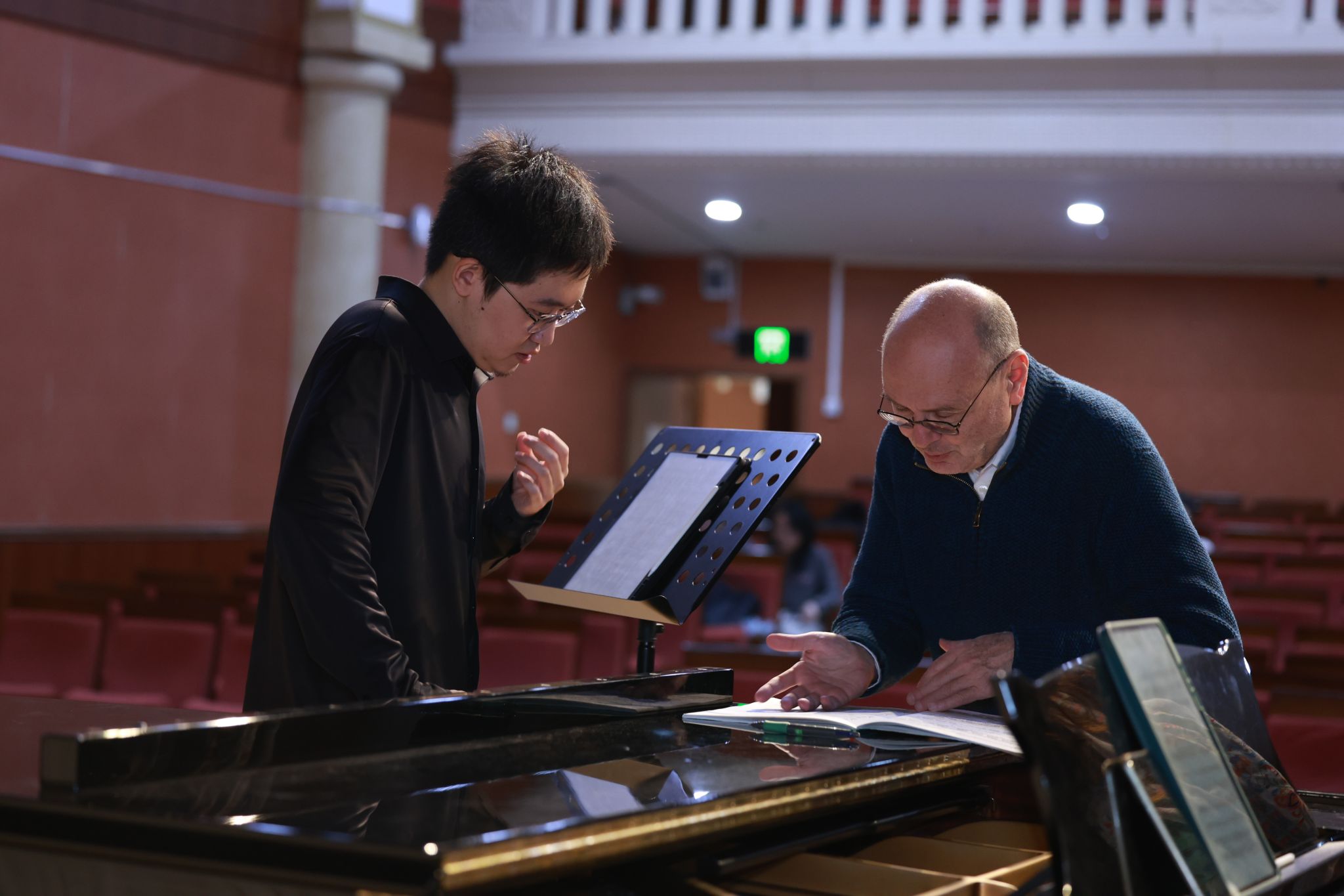 双钢琴排演方面,两位老师把歌剧钢琴缩谱伴奏中缺少的乐队声部补充进双钢琴,并根据音乐效果创编了一部分织体融入到演奏中。