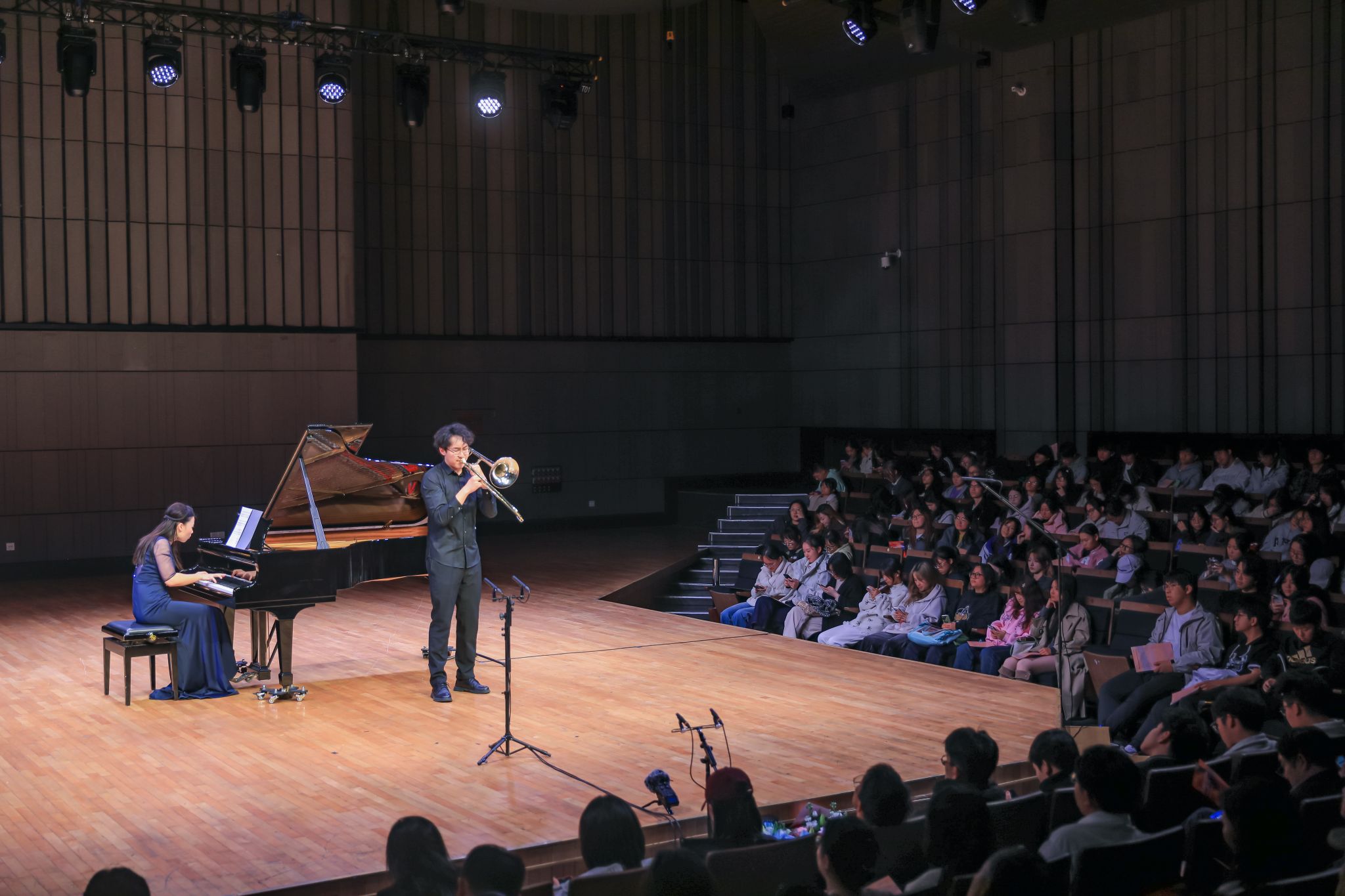 由浙江音乐学院艺术指导教学部主办的“乐相融.声共鸣”kaiyun体育网页登录入口专场音乐会于2024年11月25日晚在现代音乐厅隆重上演,现场座无虚席,气氛热烈。浙江音乐学院对当晚演出进行了全程直播,观看人数达到近10万。