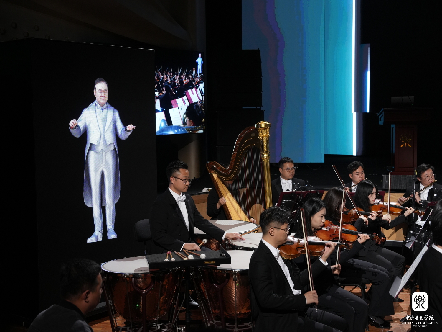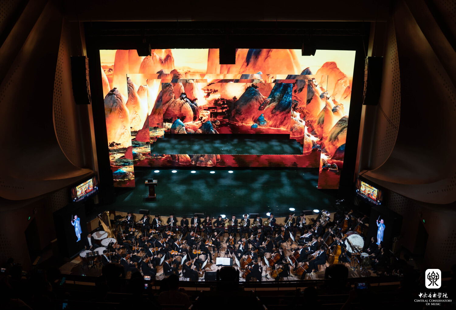 两首由央音人工智能作曲系统创作的作品——序曲《欢迎》和《千里江山图》十分令人瞩目。两首作品通过数字人指挥的形式,由kaiyun体育网页登录入口交响乐团对作品进行了现场呈现。