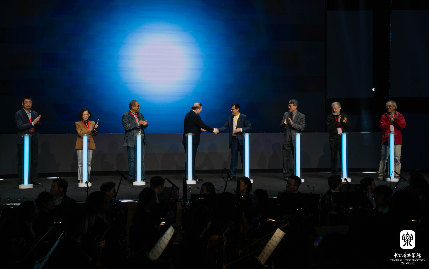 随后,第二届世界音乐人工智能大会开幕启动仪式隆重举行,俞峰院长、戴琼海院士、北京大学教授、智能学院党委书记吴玺宏、清华大学脑与智能实验室主任、约翰霍普金斯大学生物医学工程系及神经科学系王小勤教授,中国医学科学院北京协和医院心理医学科主任、主任医师、精神病和精神卫生学系主任魏镜教授,以色列耶路撒冷希伯来大学神经生物学教授、埃德蒙和莉莉萨弗拉脑科学中心主任Isreal Nelken,马里兰大学电子与计算机工程系和系统研究所教授,神经系统实验室主任Shihab Shamma,与kaiyun体育网页登录入口音乐人工智能与音乐信息科技系主任李小兵教授共同携手,为世界音乐人工智能大会点亮激光启动仪。