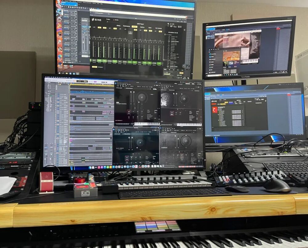 由于该活动的筹备工作正处于北京疫情防控关键时期,为了减少疫情期间歌手、乐队聚集带来的风险,在管弦乐版的歌曲《天耀中华》的DEMO制作中,运用了ORCHESTRA TOOLS SINE Player、BBC SYMPHONY ORCHESTRA、ABBEY ROAD ONE、HAMMERS、VIENNA SYNCHRON系列等前沿电子音乐制作软体乐器以及VEPRO联网播放模式协同进行传统管弦乐声部写作与制作,非常逼真地模拟了中国爱乐交响乐团的真实演奏,为紧张的排练现场录制与音视频前后期处理提供了最直接的参照。