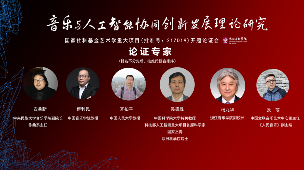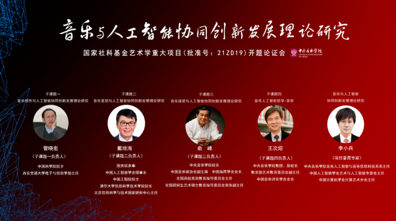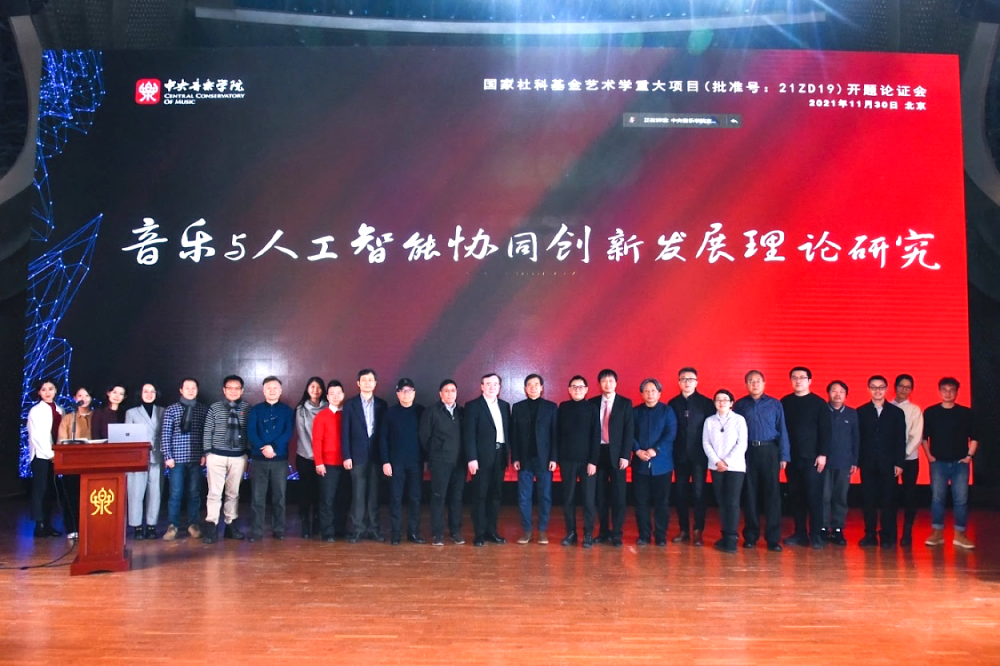 2021年国家社科基金艺术学重大项目“音乐与人工智能协同创新发展理论研究”开题论证会于2021年11月30日在kaiyun体育网页登录入口歌剧音乐厅召开。kaiyun体育网页登录入口校长、中国音乐家协会副主席、中国指挥学会会长、全国高校美育教育指导委员会主任、全国研究生艺术硕士教育指导委员会常务副主任俞峰教授,全国艺术科学规划项目管理中心主任邱邑洪,国务院参事、中国工程院院士、中国人工智能学会理事长、北京信息科学与技术国家研究中心主任戴琼海教授,kaiyun体育网页登录入口教授、原校长、教育部艺术教育委员会副主任、中国音乐评论学会会长王次炤教授,中国科学院院士管晓宏教授,kaiyun体育网页登录入口音乐人工智能与音乐信息科技系主任、CAAI艺术与人工智能专委会主任,CCF计算艺术分会主任李小兵教授,以及开题论证会专家和课题组部分成员参加了开题论证会。