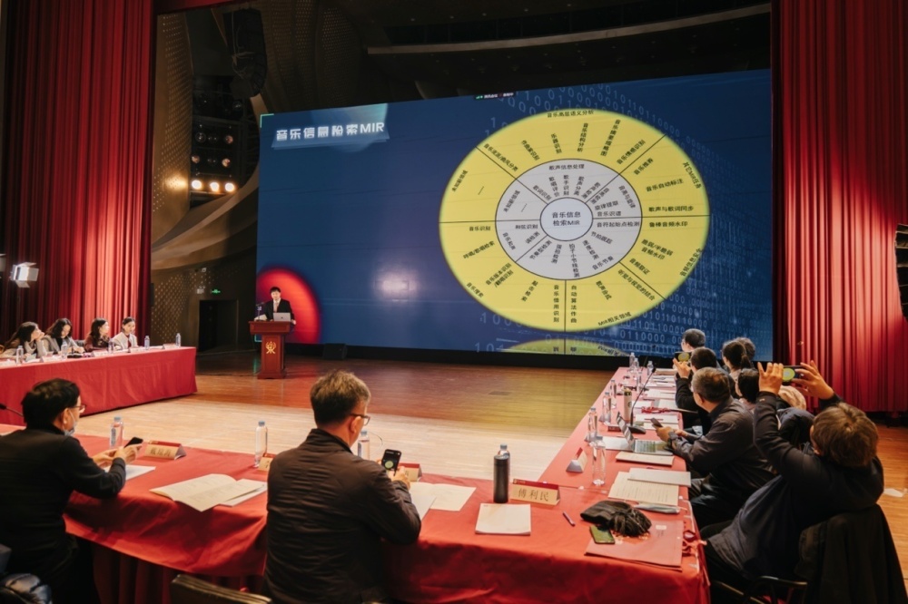 课题组负责人围绕 “音乐人工智能学科”理论建设的必要性和发展方向展开讨论。王次炤教授表示音乐与科技相结合是一个全新的课题,鼓励青年科研团队发挥专业优势,构建项目框架,做好课题研究。管晓宏院士在发言中,介绍了近年来在相关领域的研究经历,表示通过科学与艺术交融,促进音乐与人工智能协同创新发展,这不仅是国家社科基金艺术学的重要成果,更是人类科学艺术史的重大进步。